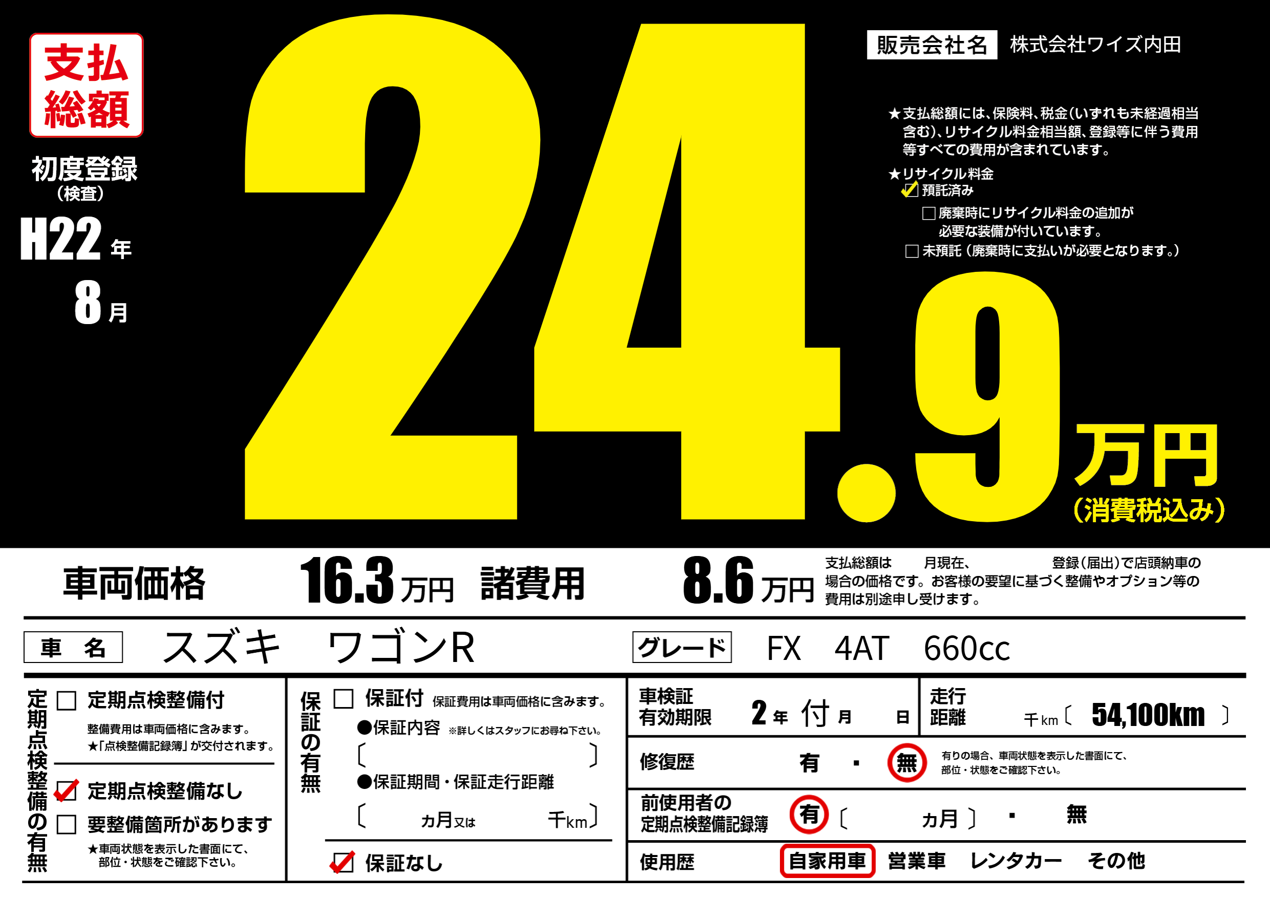 | 初年度登録 | H22年8月 | ||