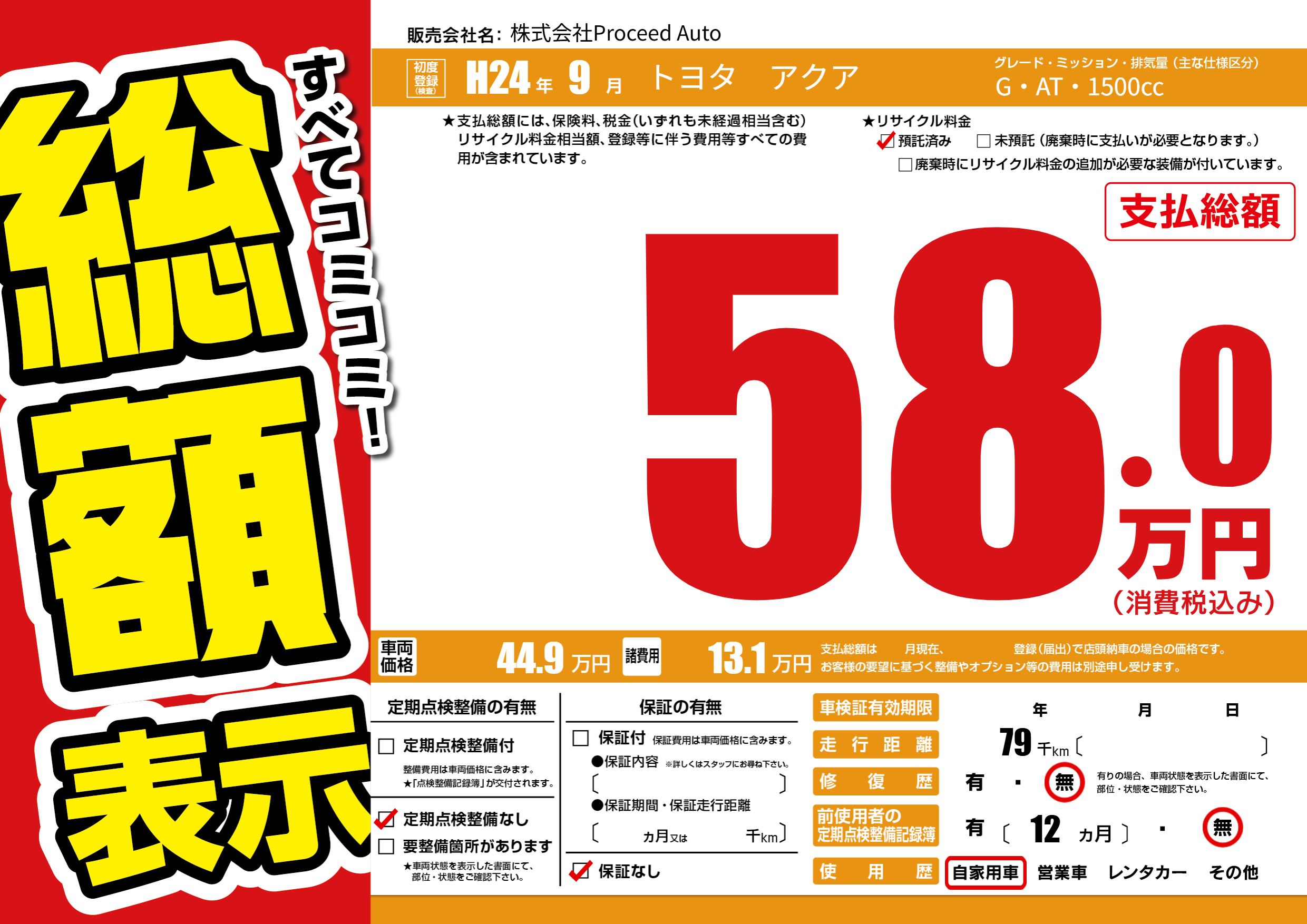 | 走行キロ | 7.9万km | 初年度登録 | H24年9月 |