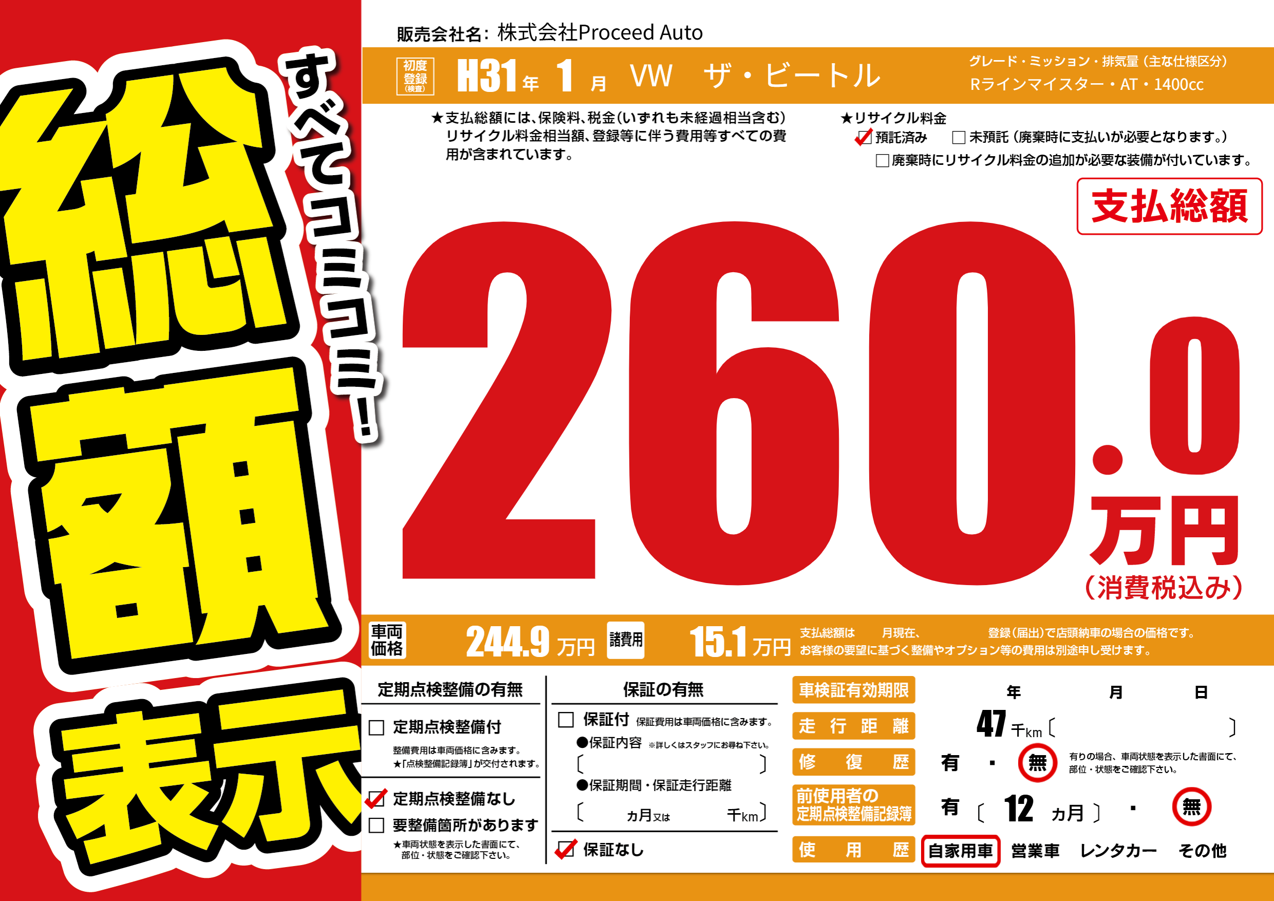 | 車名 | VW ザ・ビートル | グレード ミッション 排気量 |