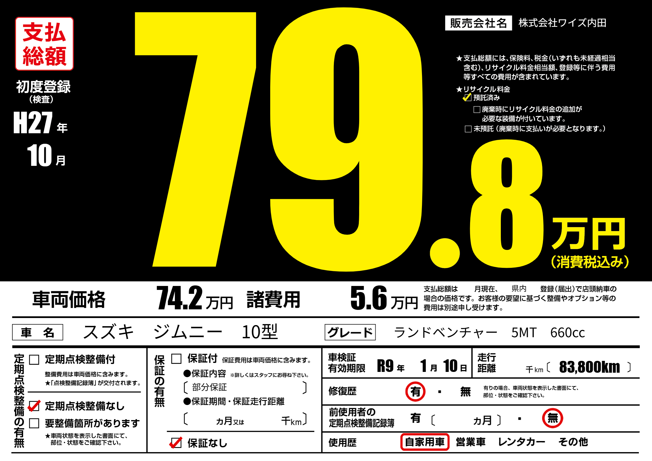 なし | 車検制限 | R9年1月10月 |