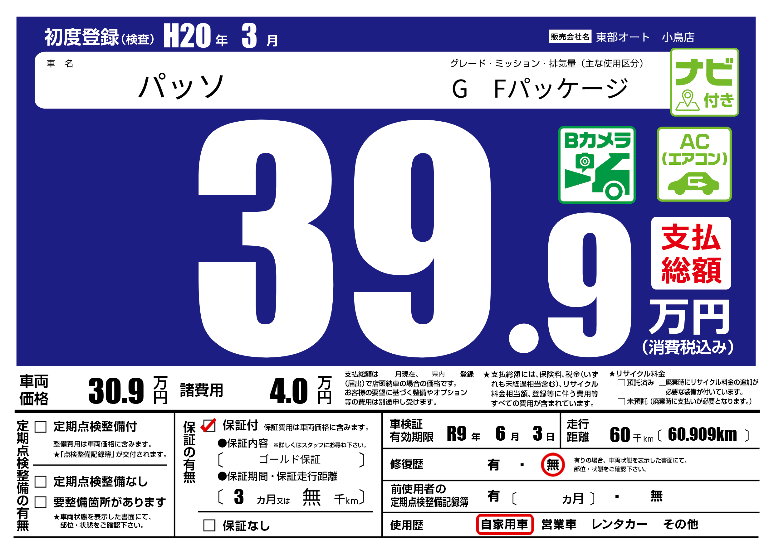 保証付き 保証内容( ゴールド保証) 3ヶ月または(無)千kmまで |