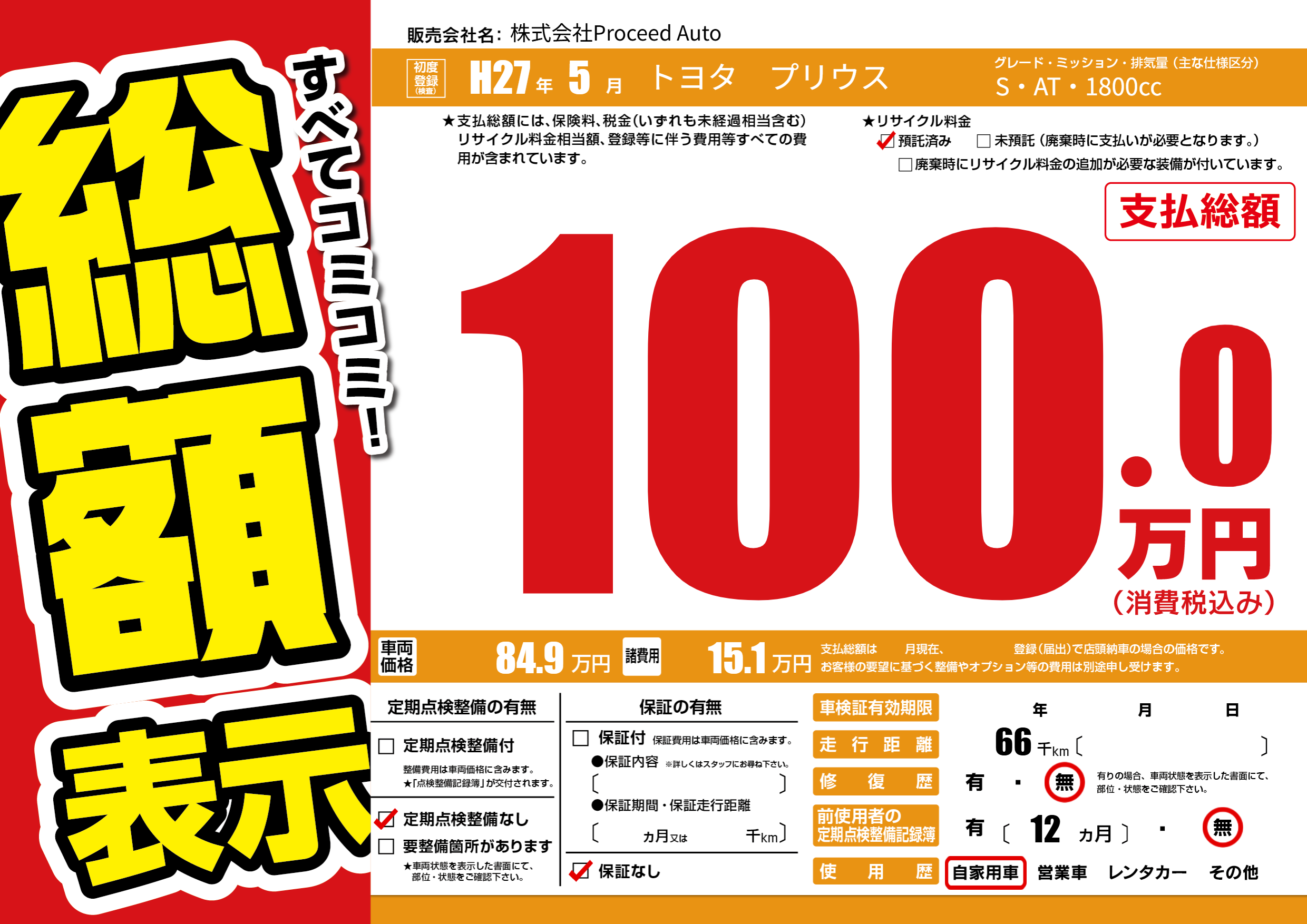 | 車検制限 | - 年 - 月 - 日 | ||