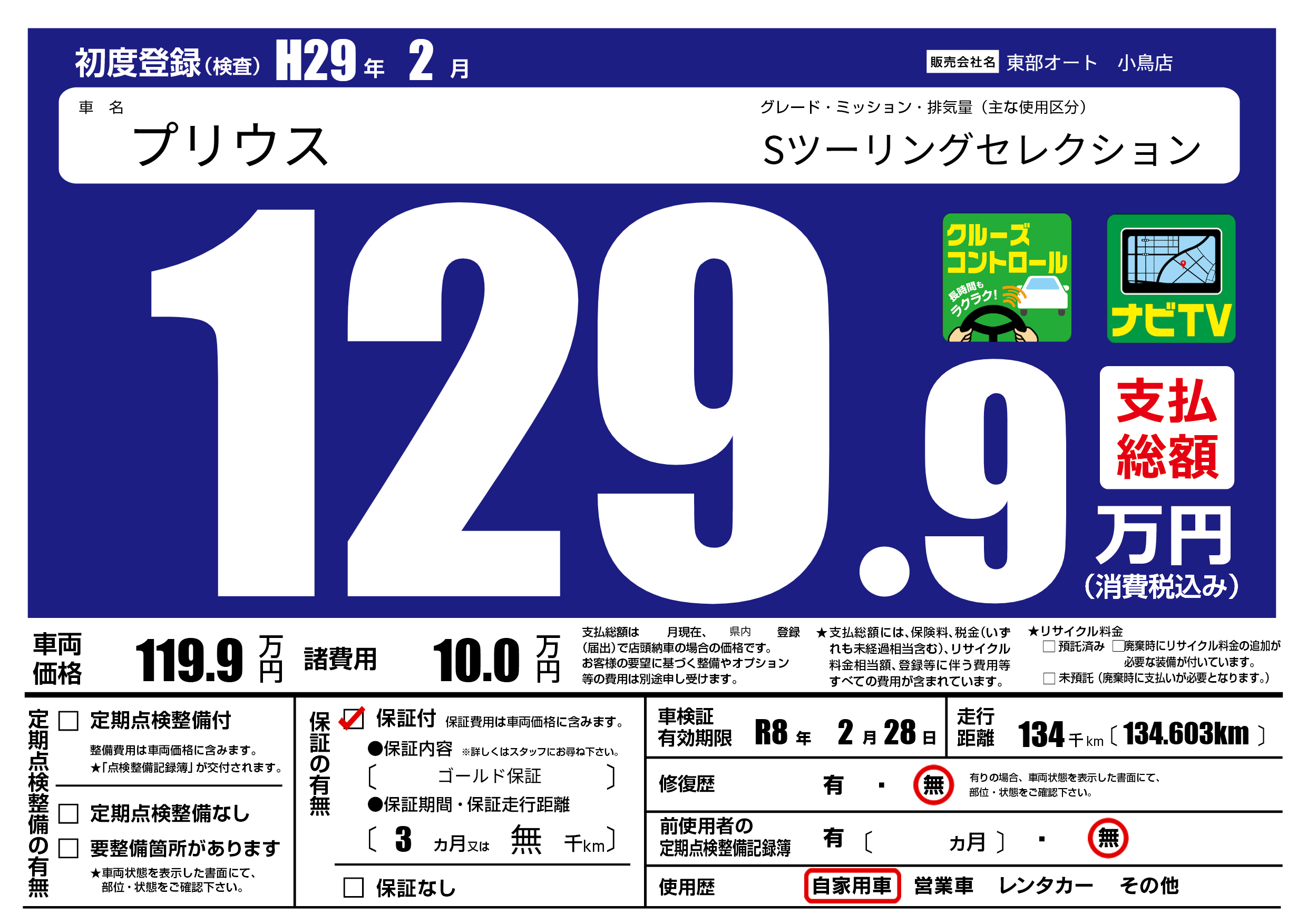 保証付き 保証内容( ゴールド保証) 3ヶ月または(無)千kmまで |