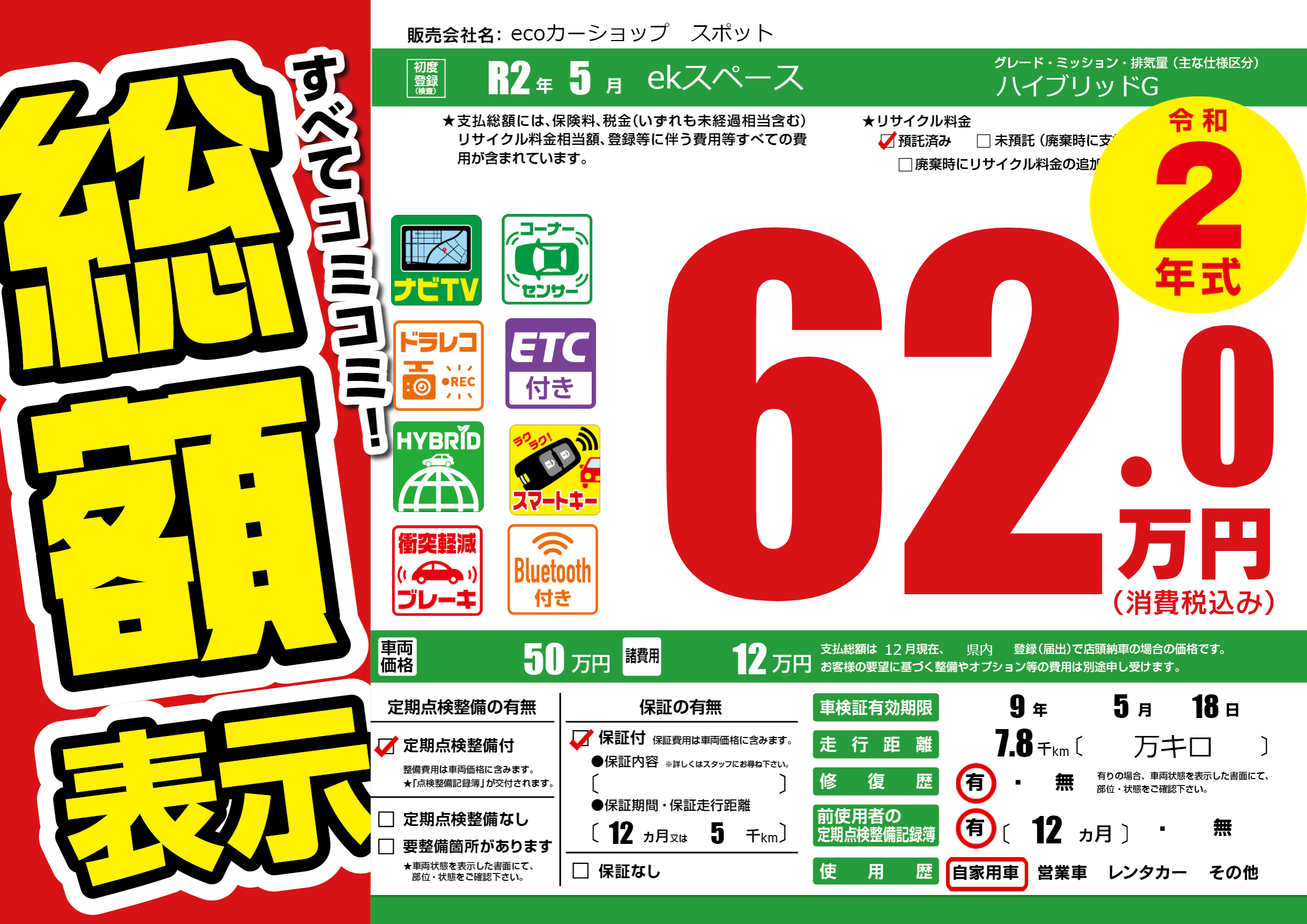 | 車名 | ekスペース | グレード ミッション 排気量 |