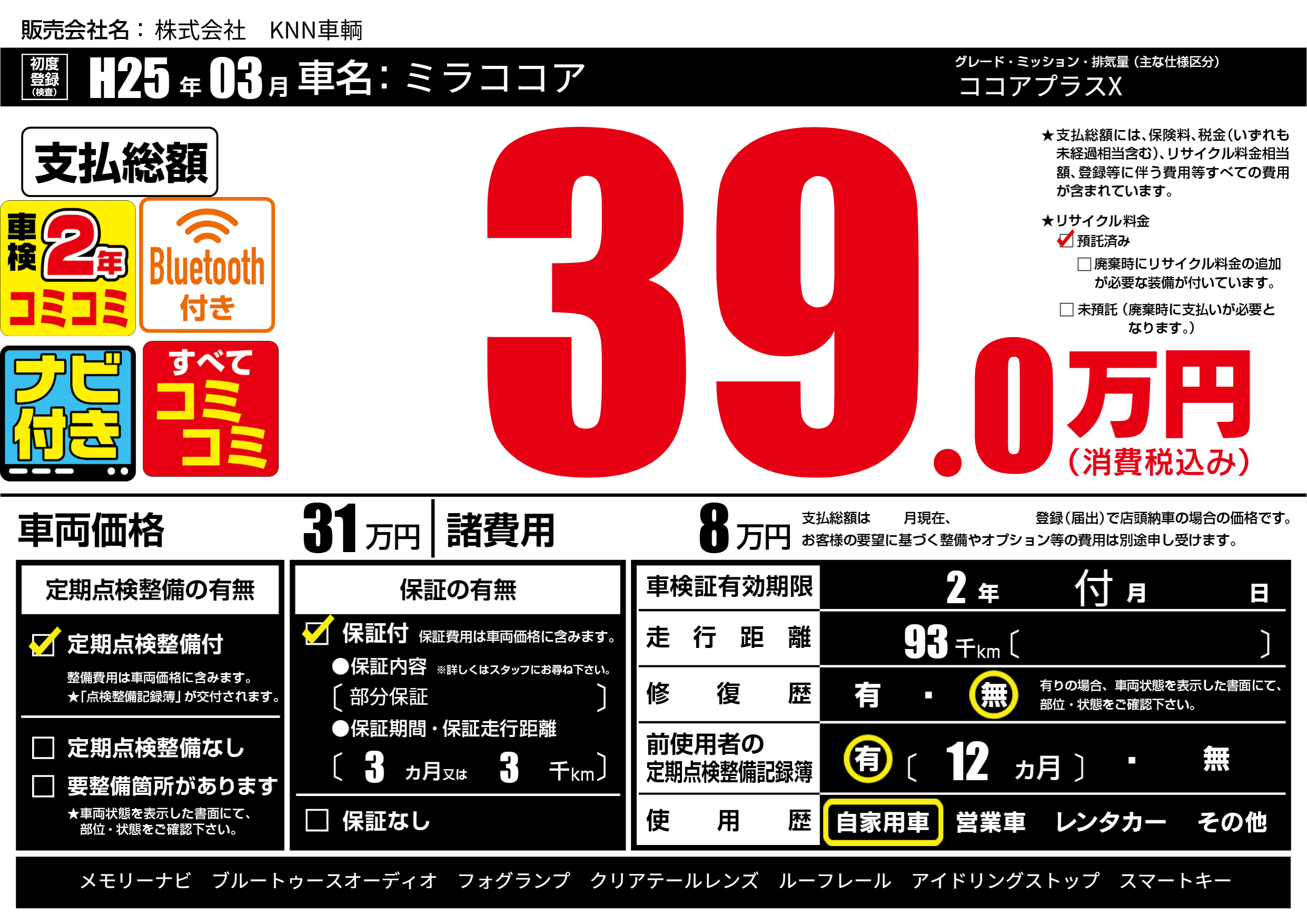 | 定期点検整備 | 定期点検整備あり | ||