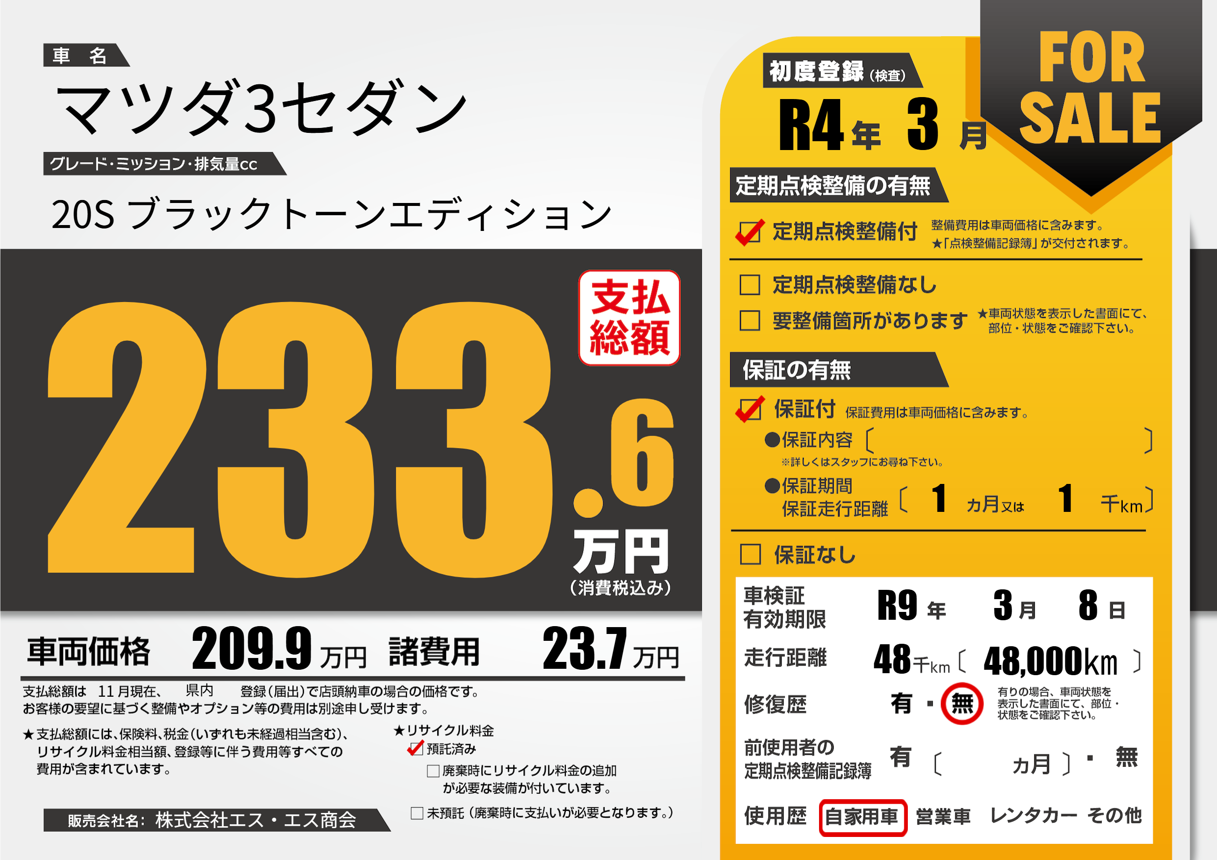 | 走行キロ | 4.8万km | 初年度登録 | R4年3月 |