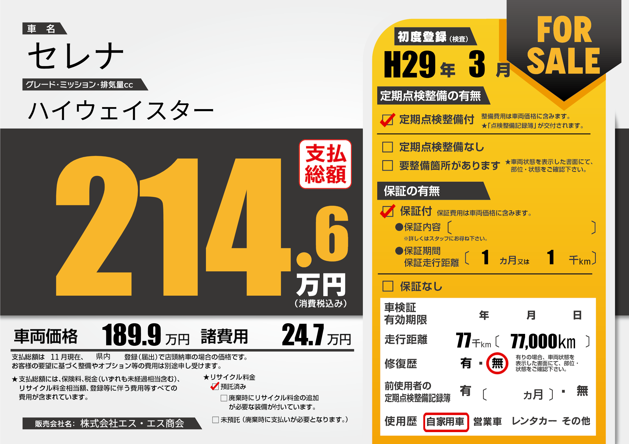 | 走行キロ | 7.7万km | ||