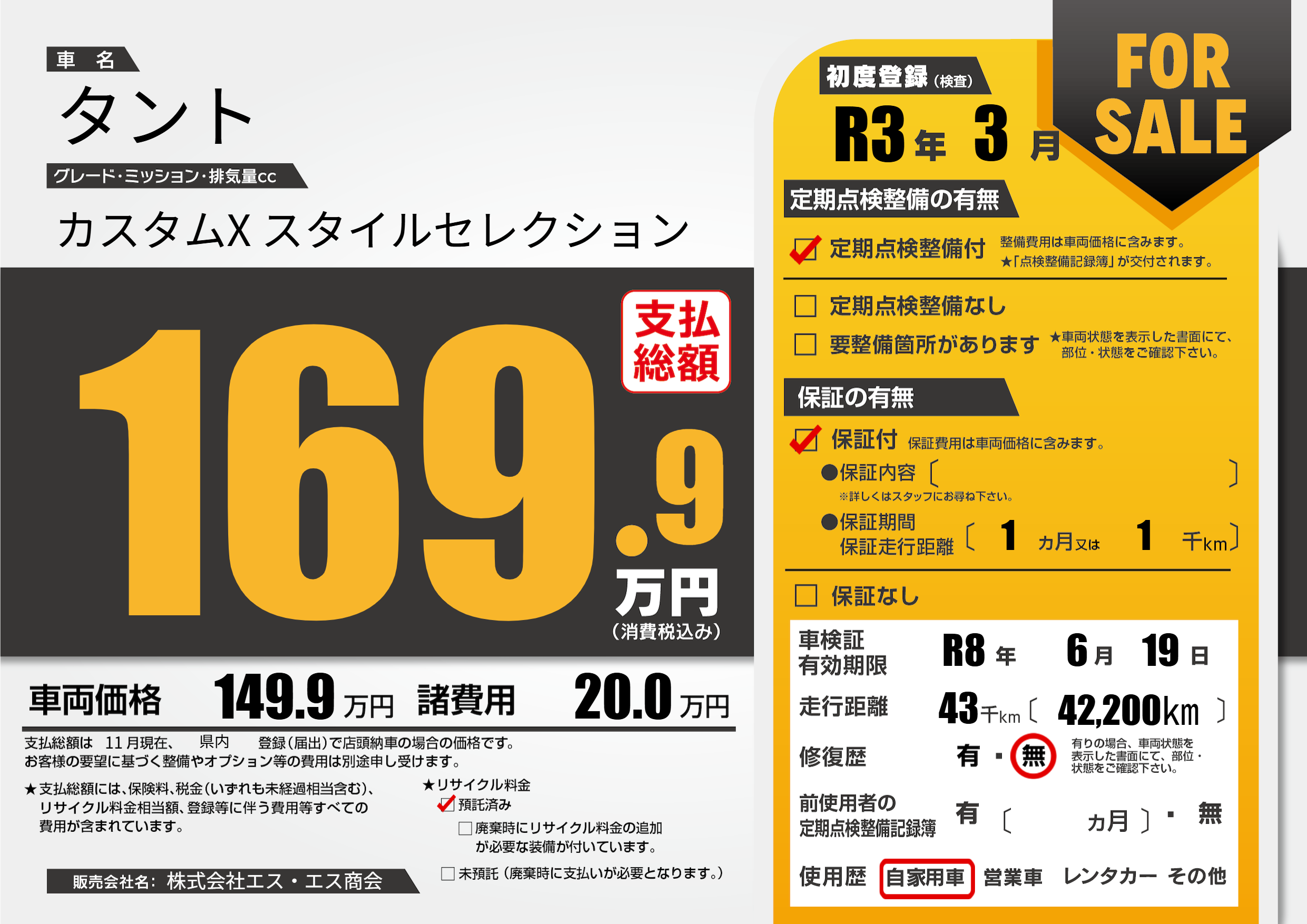 | 走行キロ | 4.3万km | 初年度登録 | R3年3月 |