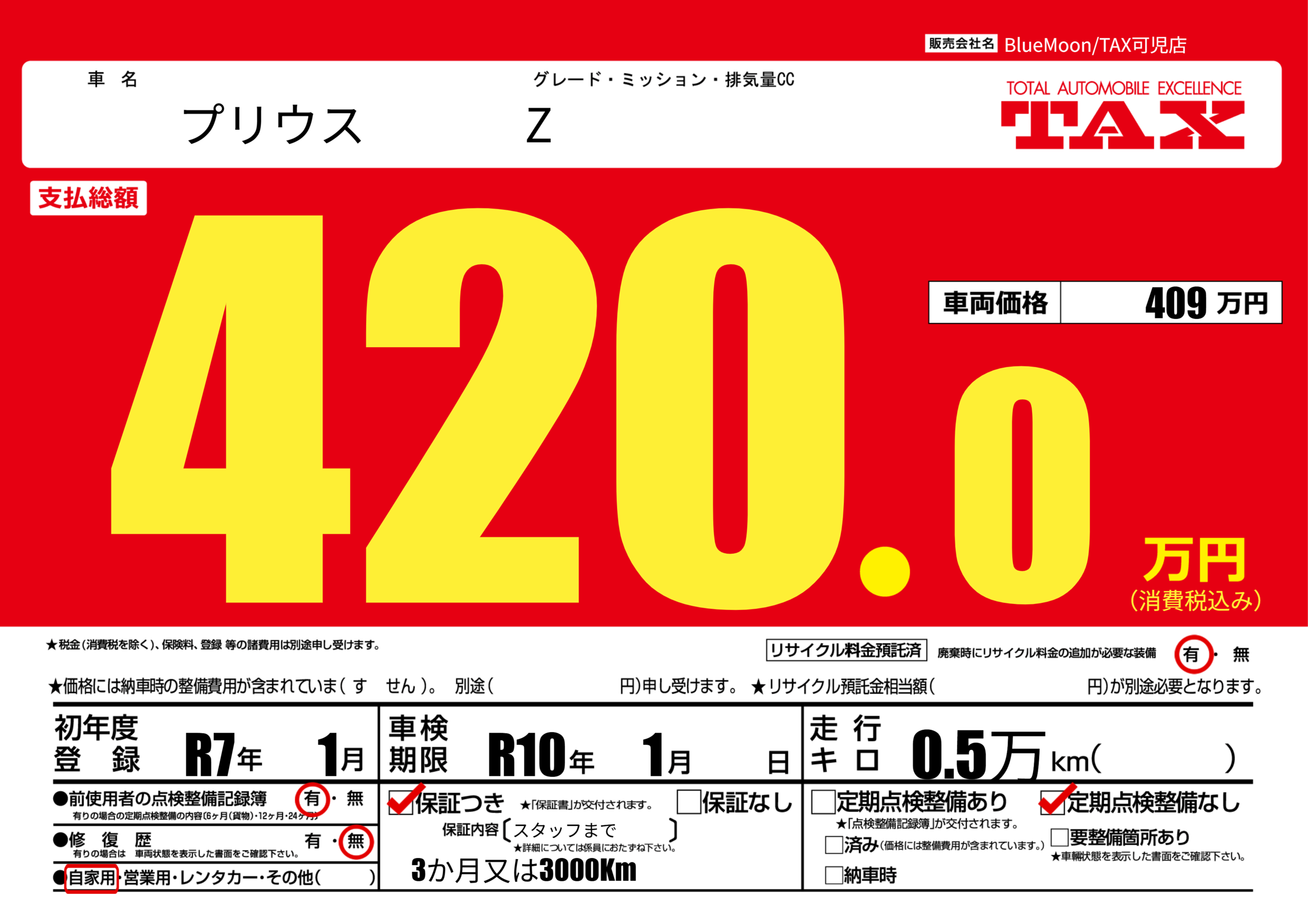 | 車検制限 | R10年 1月 - 日 | ||