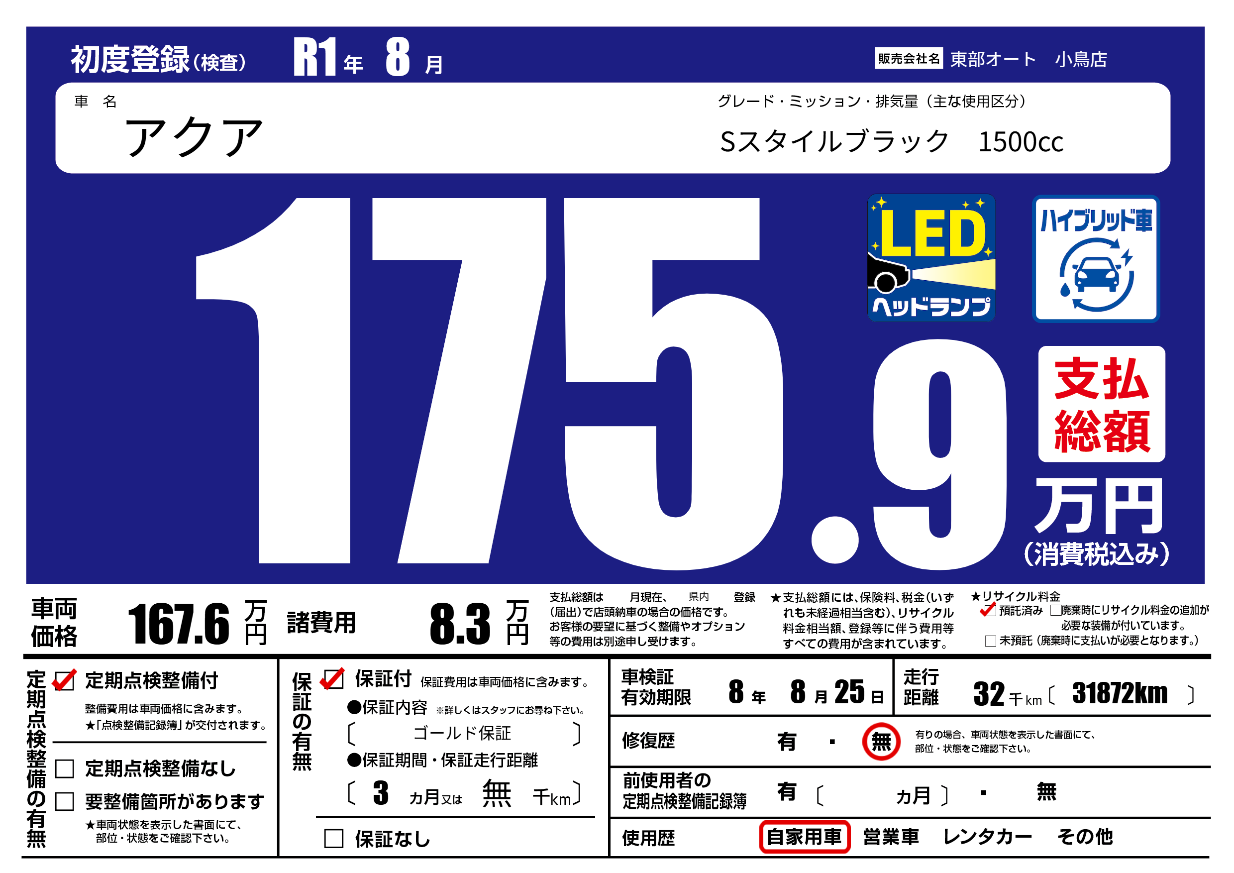 なし | 車検制限 | 8年8月25月 |