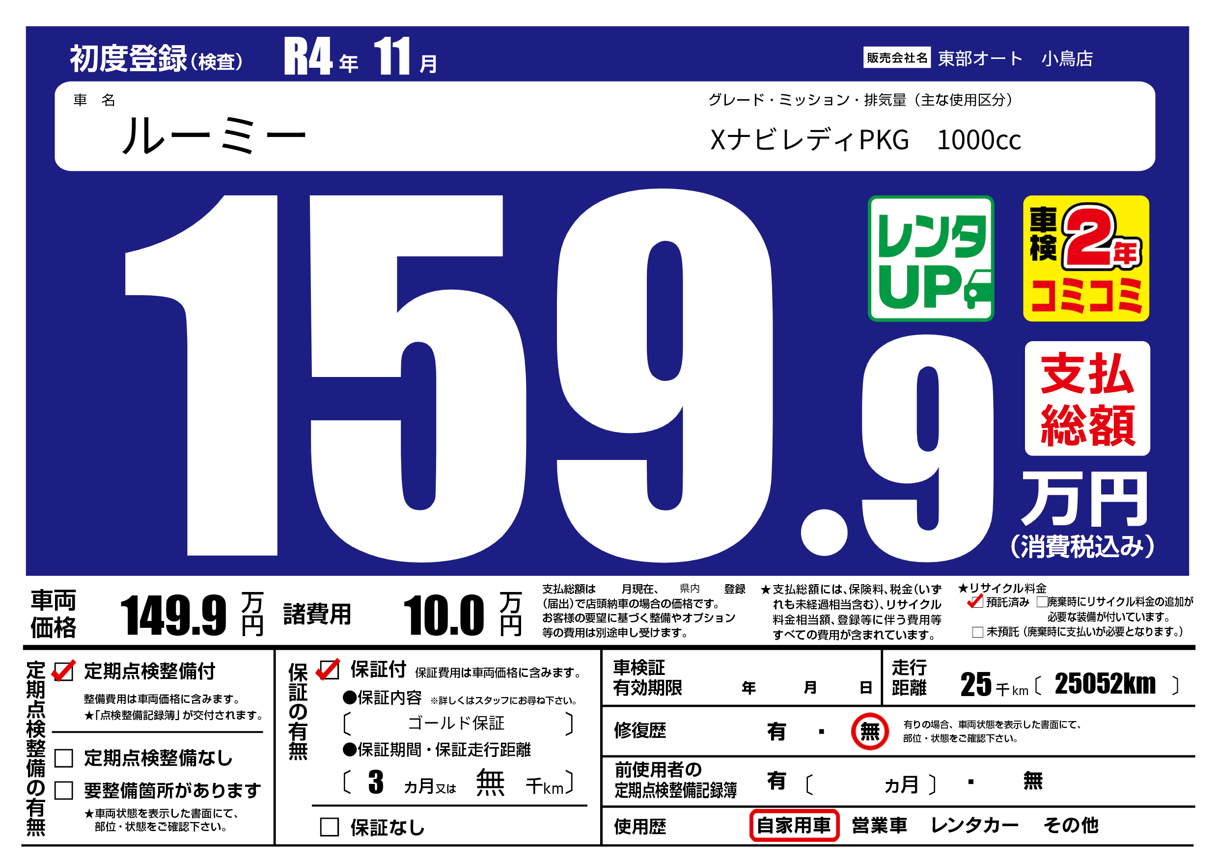 保証付き 保証内容( ゴールド保証) 3ヶ月または(無)千kmまで |