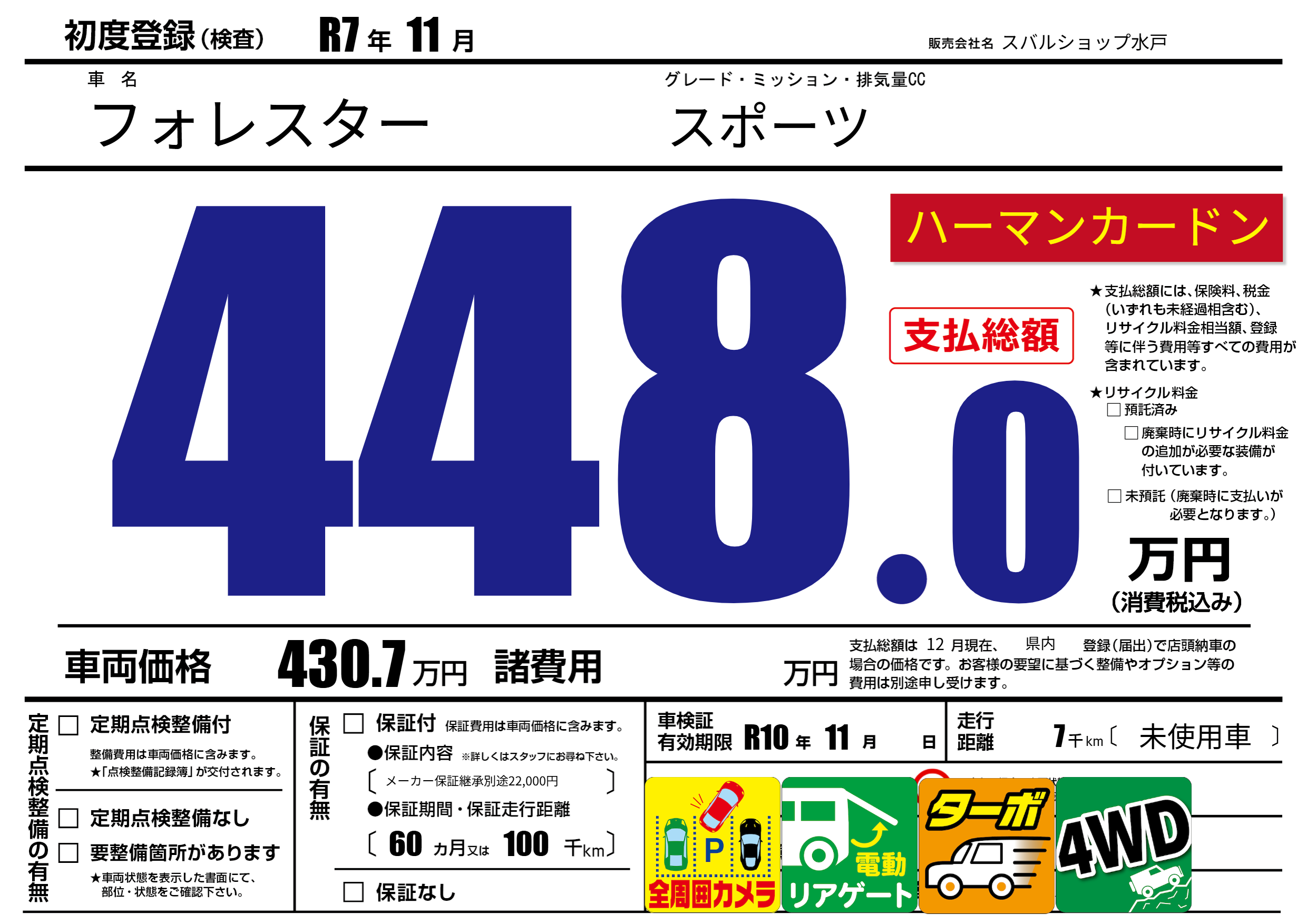 | 車名 | フォレスター | グレード ミッション 排気量 |