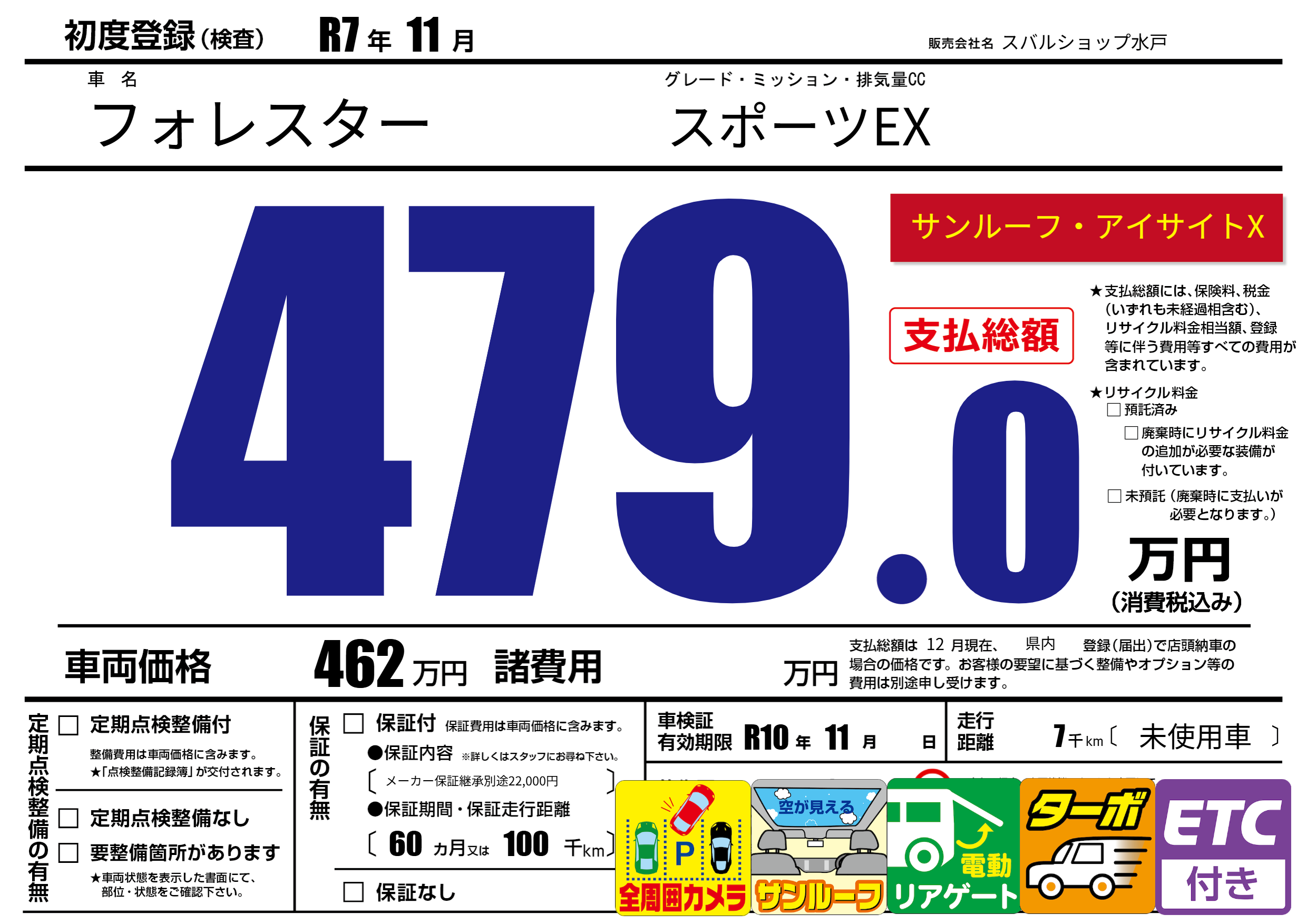 | 車名 | フォレスター | グレード ミッション 排気量 |