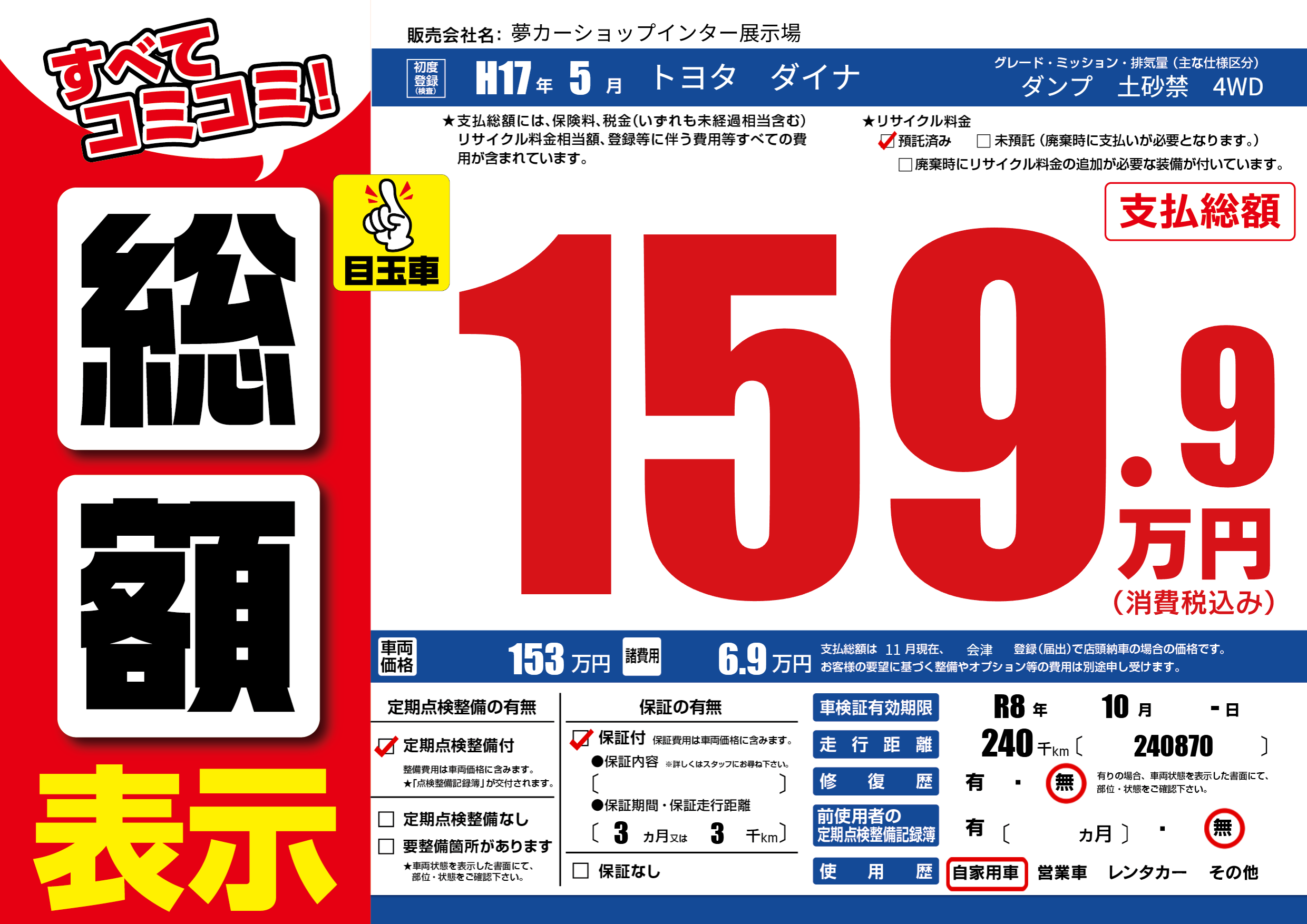 保証付き 保証内容(---) 3ヶ月または(3)千kmまで |