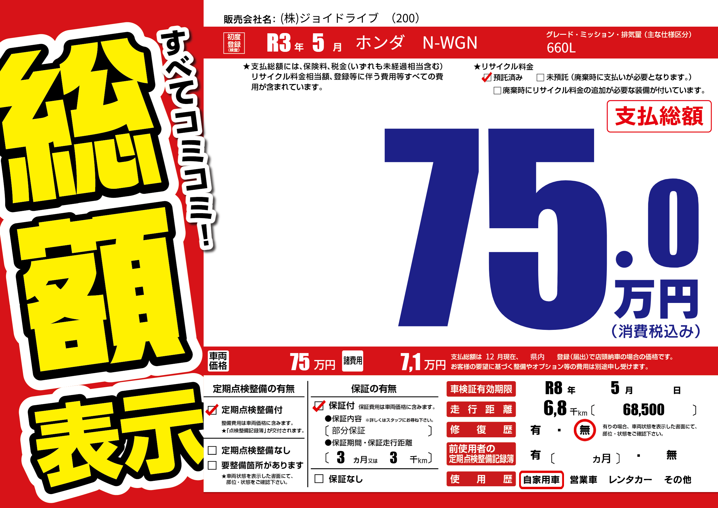 なし | 車検制限 | R8年5月---月 |