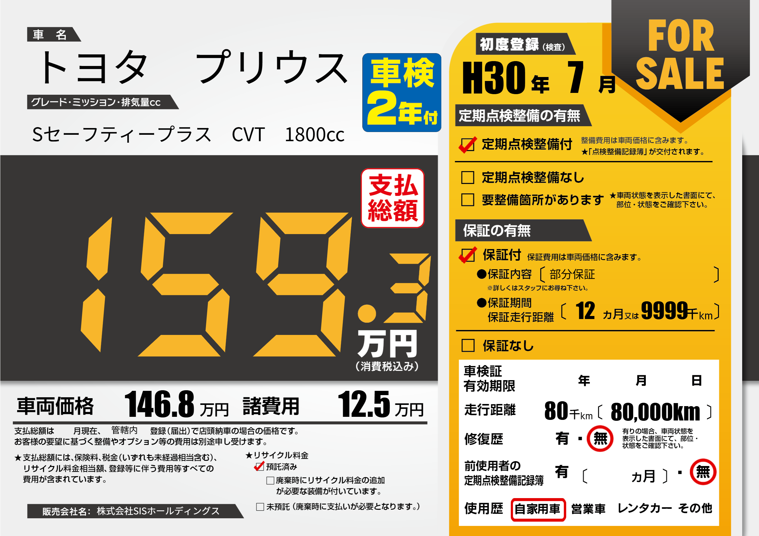 保証付き 保証内容(部分保証) 12ヶ月または(9999)千kmまで |