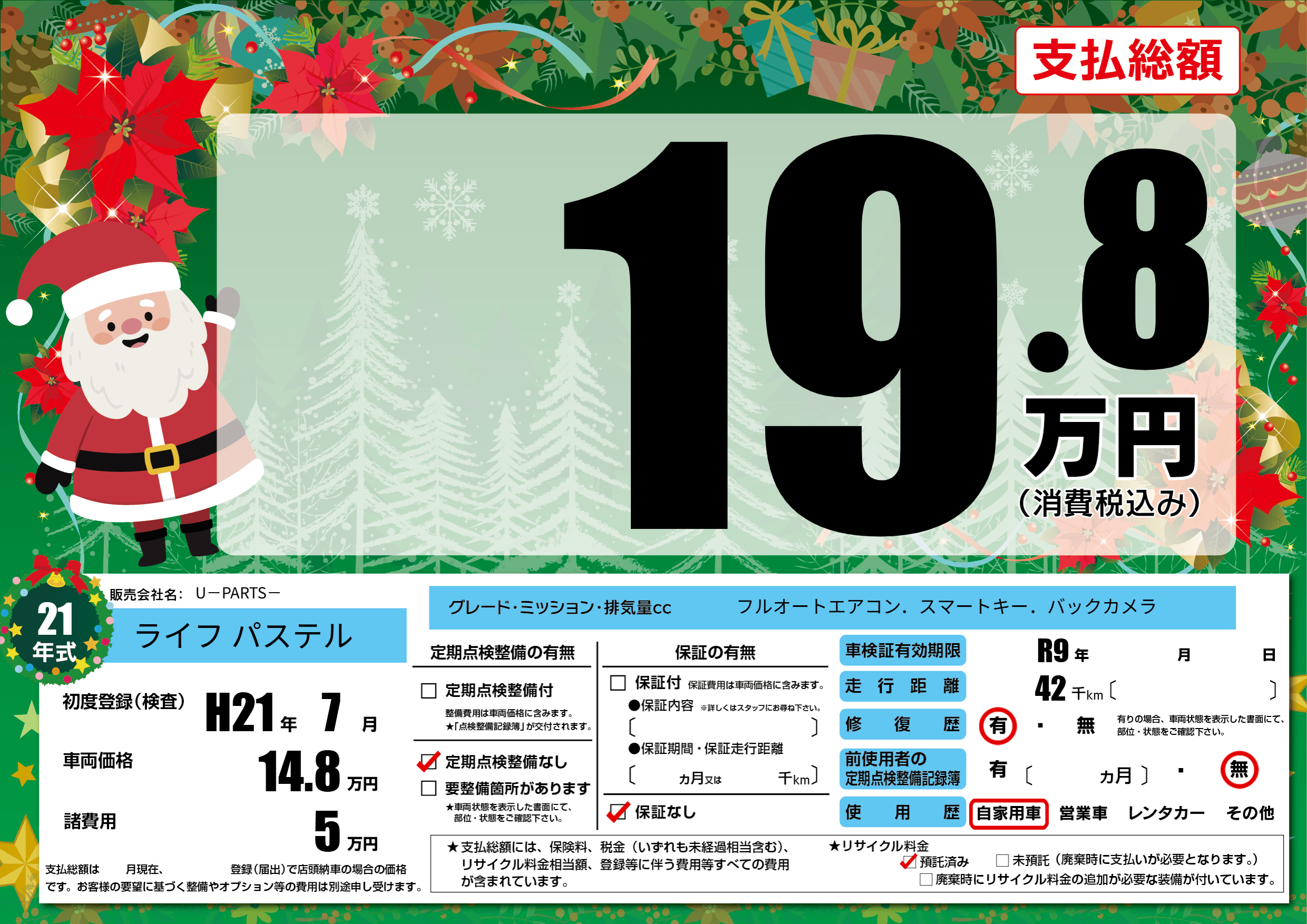 | 走行キロ | 4.2万km | 初年度登録 | H21年7月 |