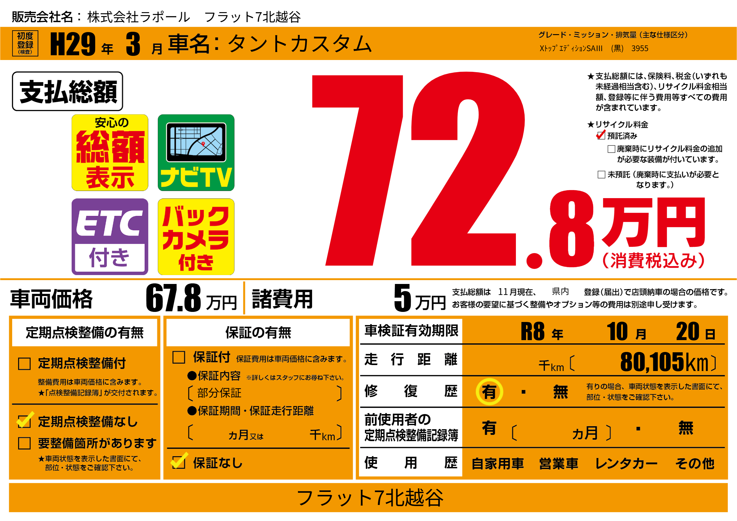 | 走行キロ | - | 初年度登録 | H29年3月 |