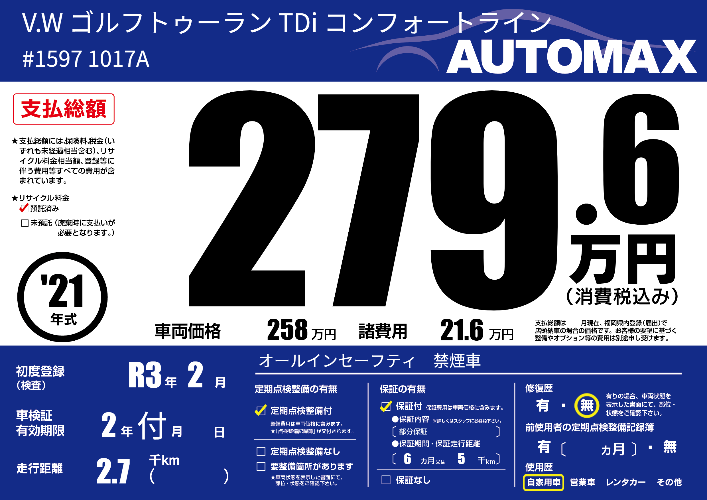 | 定期点検整備 | 定期点検整備あり | ||