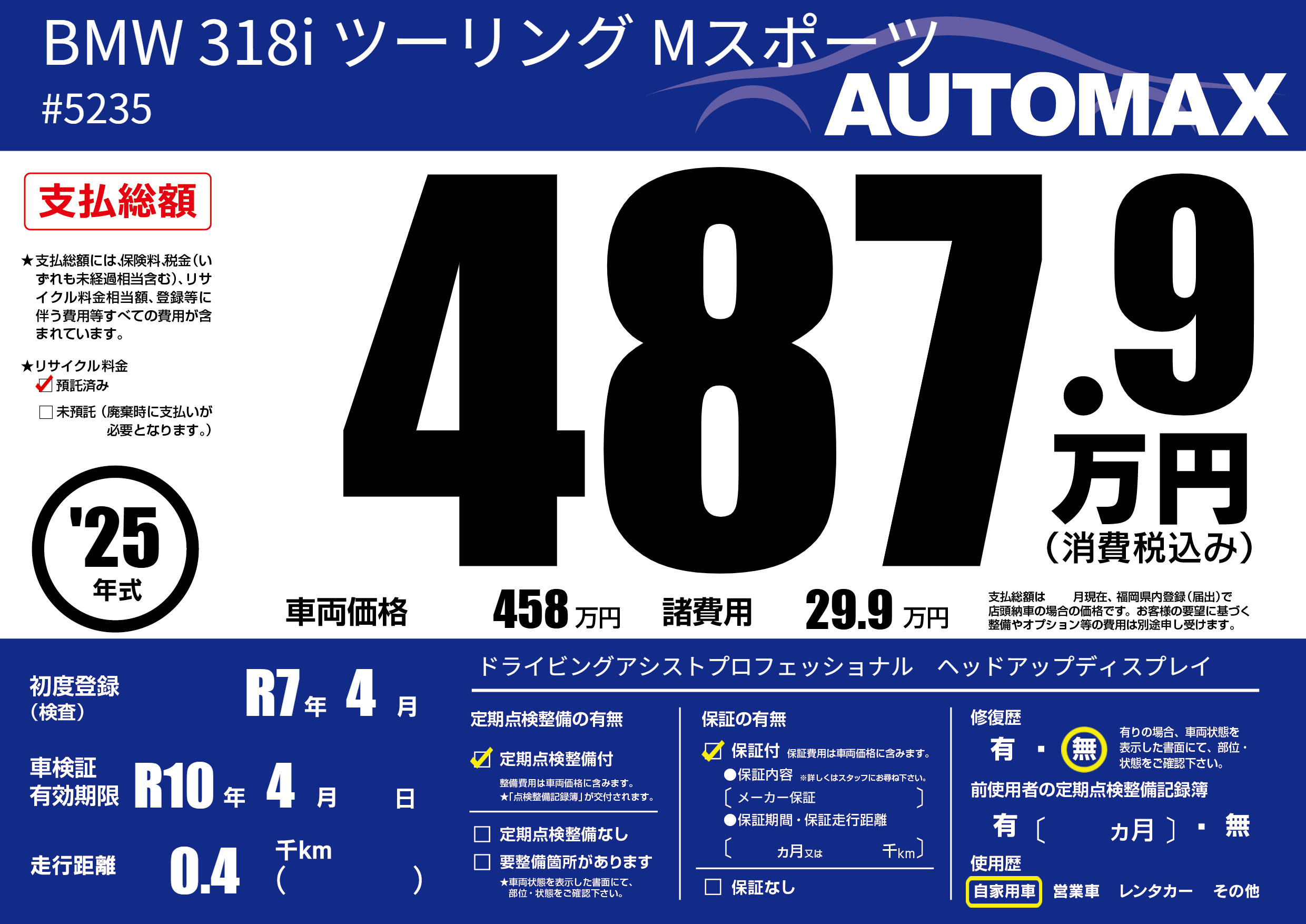 | 初年度登録 | R7年4月 | ||