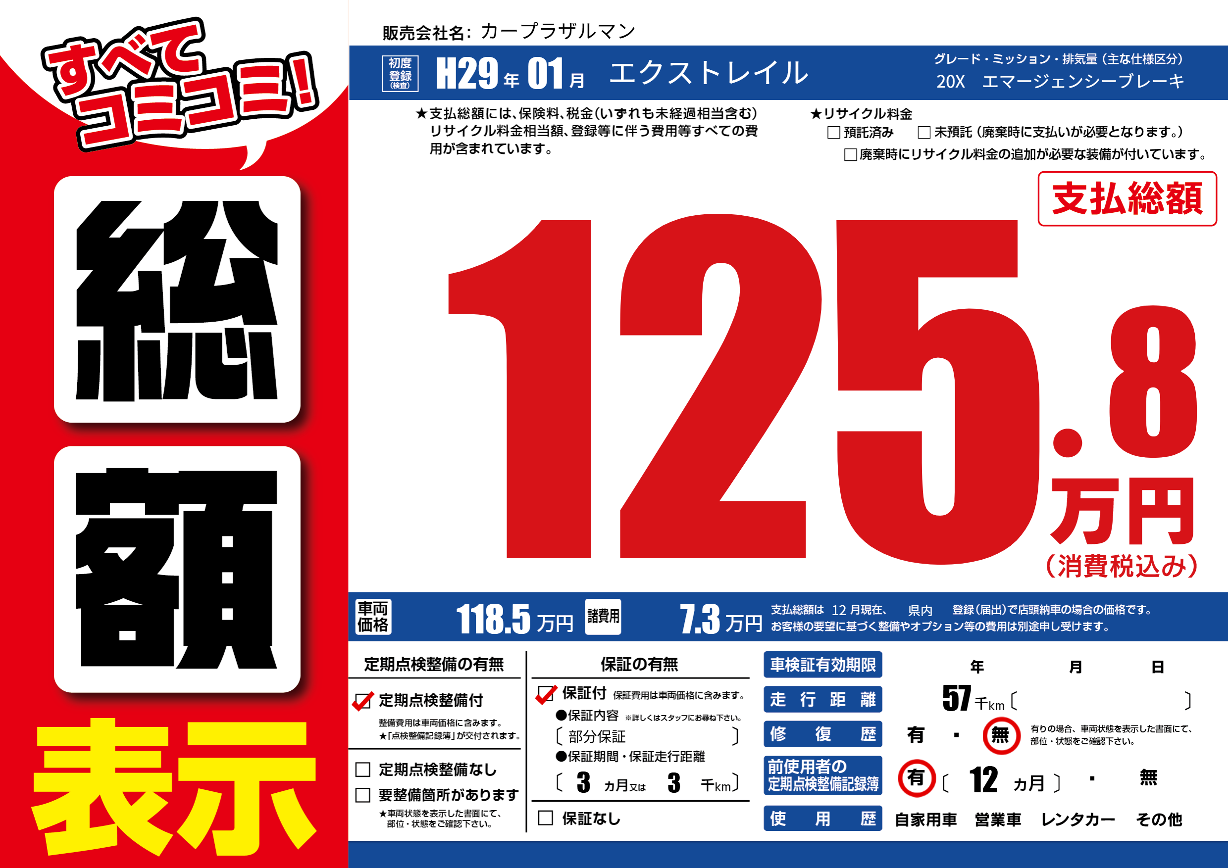 保証付き 保証内容(部分保証) 3ヶ月または(3)千kmまで |