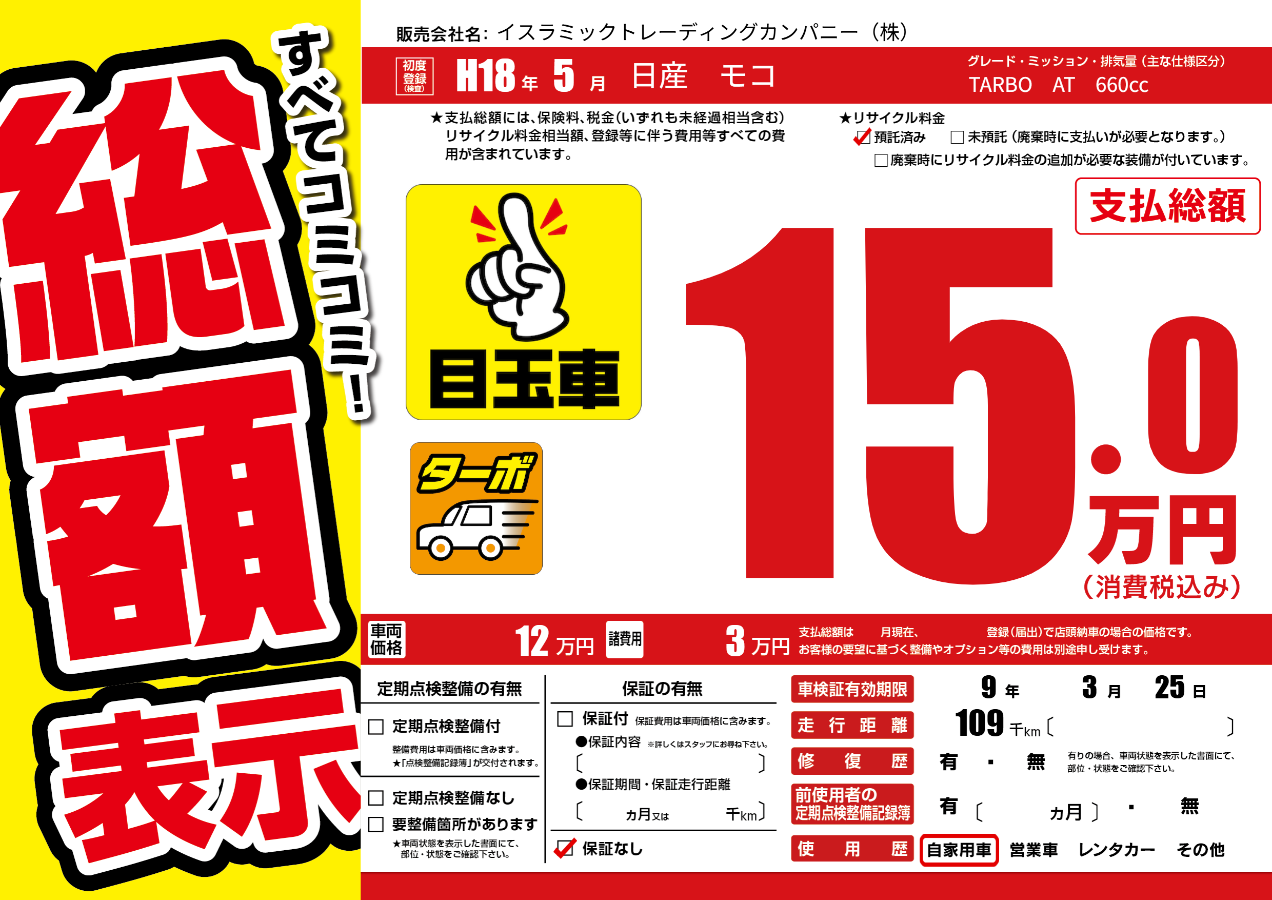 | 車検制限 | 9年 3月 25日 | ||