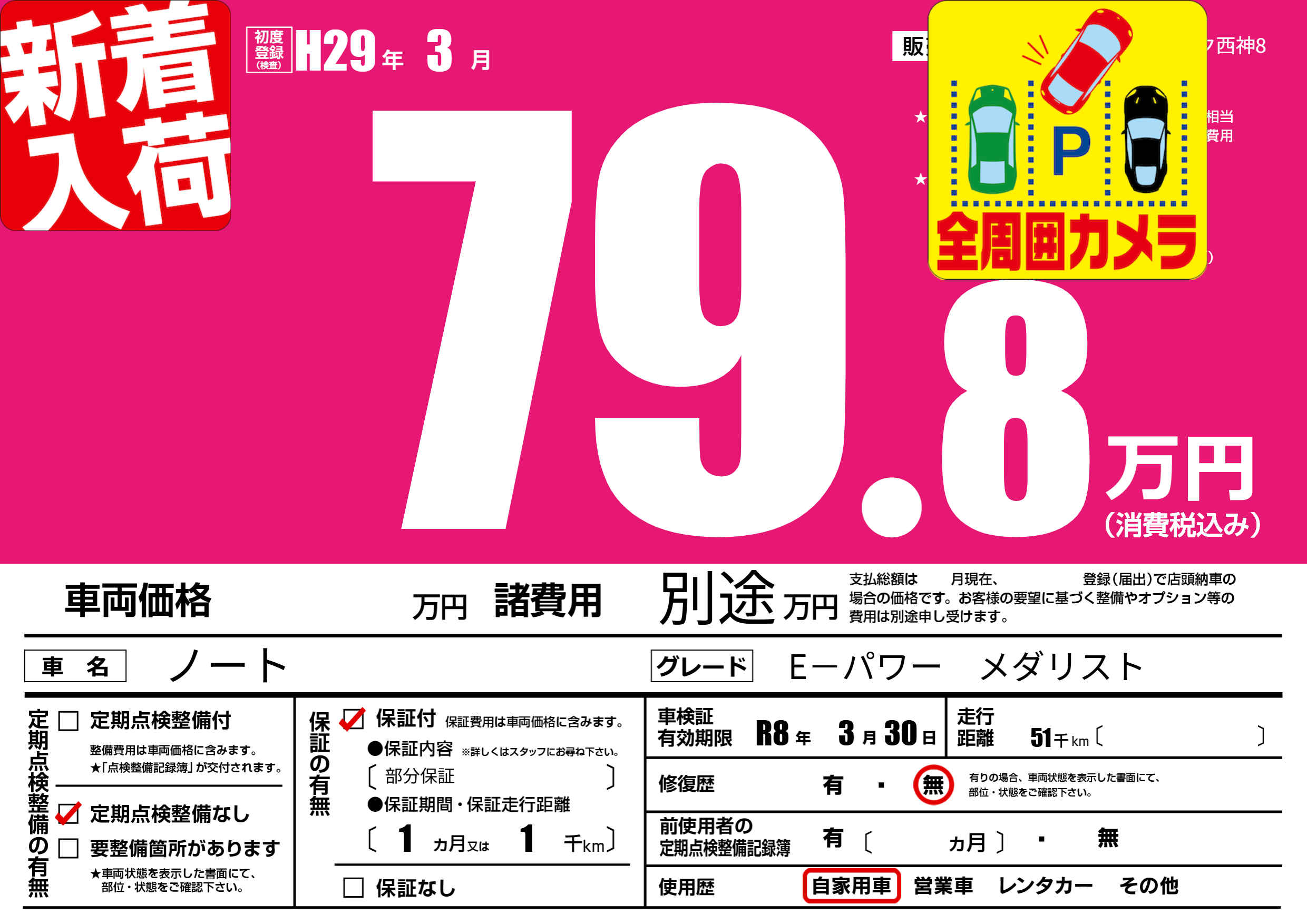 | 走行キロ | 5.1万km | 初年度登録 | H29年3月 |