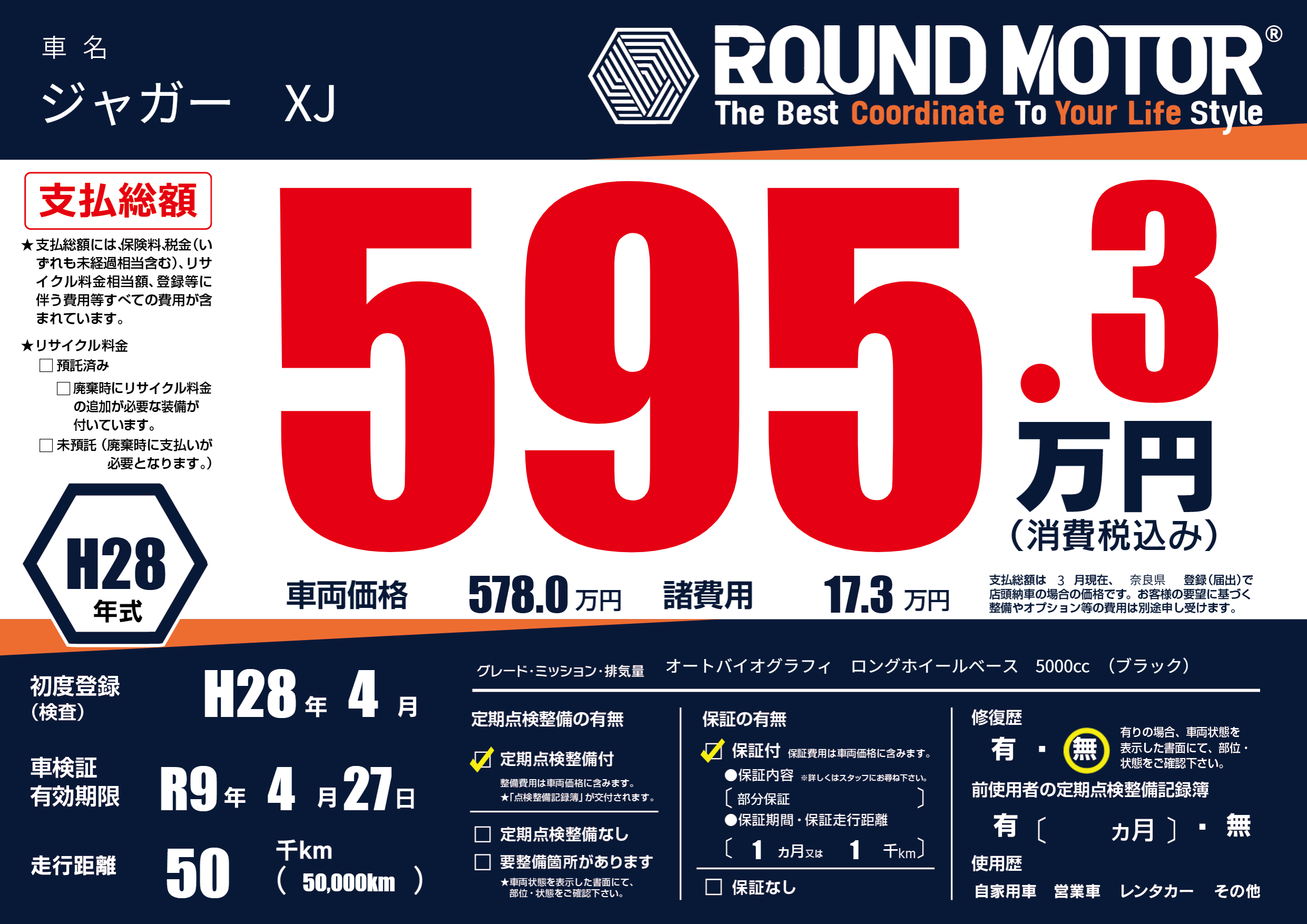 | 車名 | ジャガー XJ | グレード ミッション 排気量 |