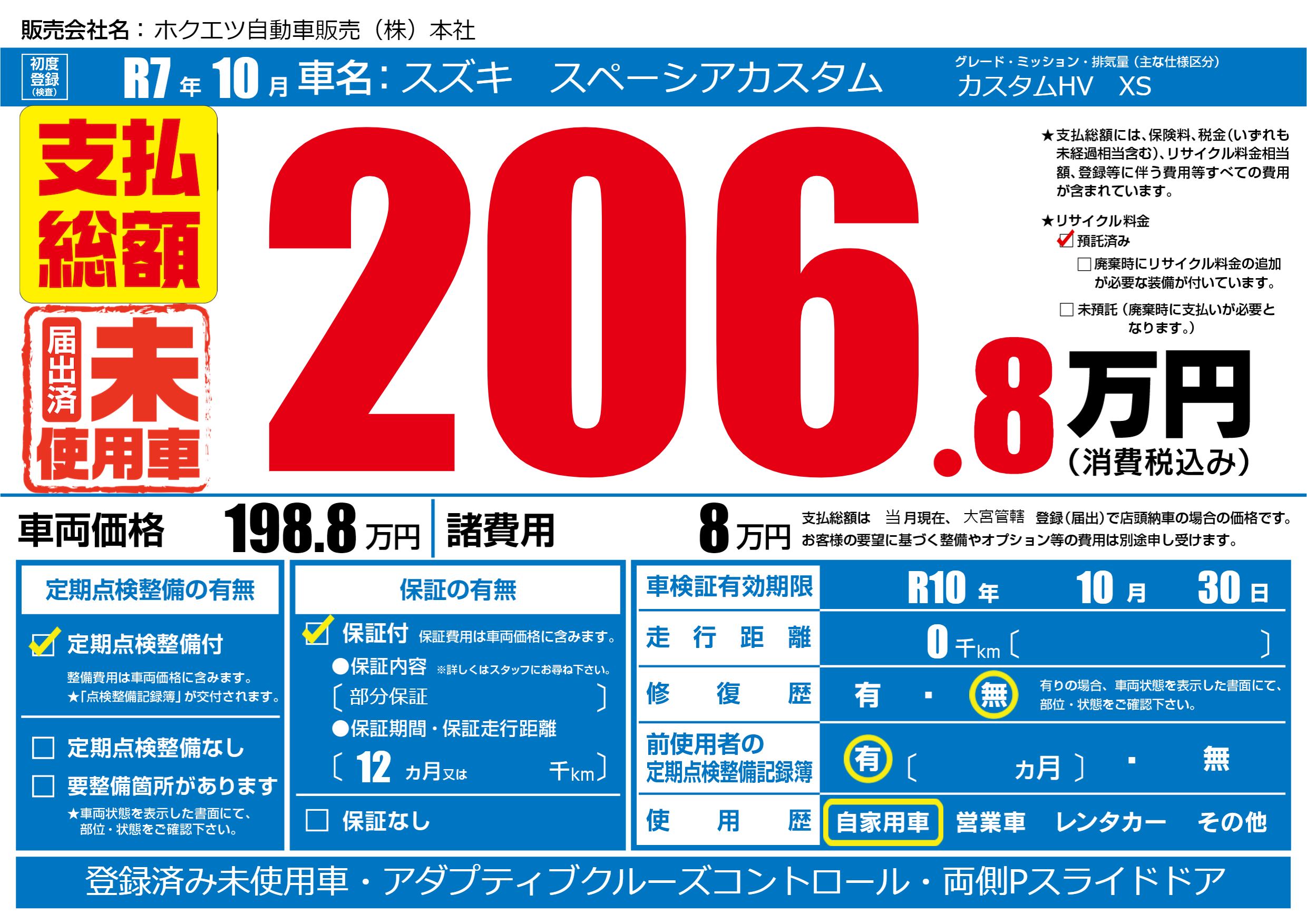 | 走行キロ | - | 初年度登録 | R7年10月 |