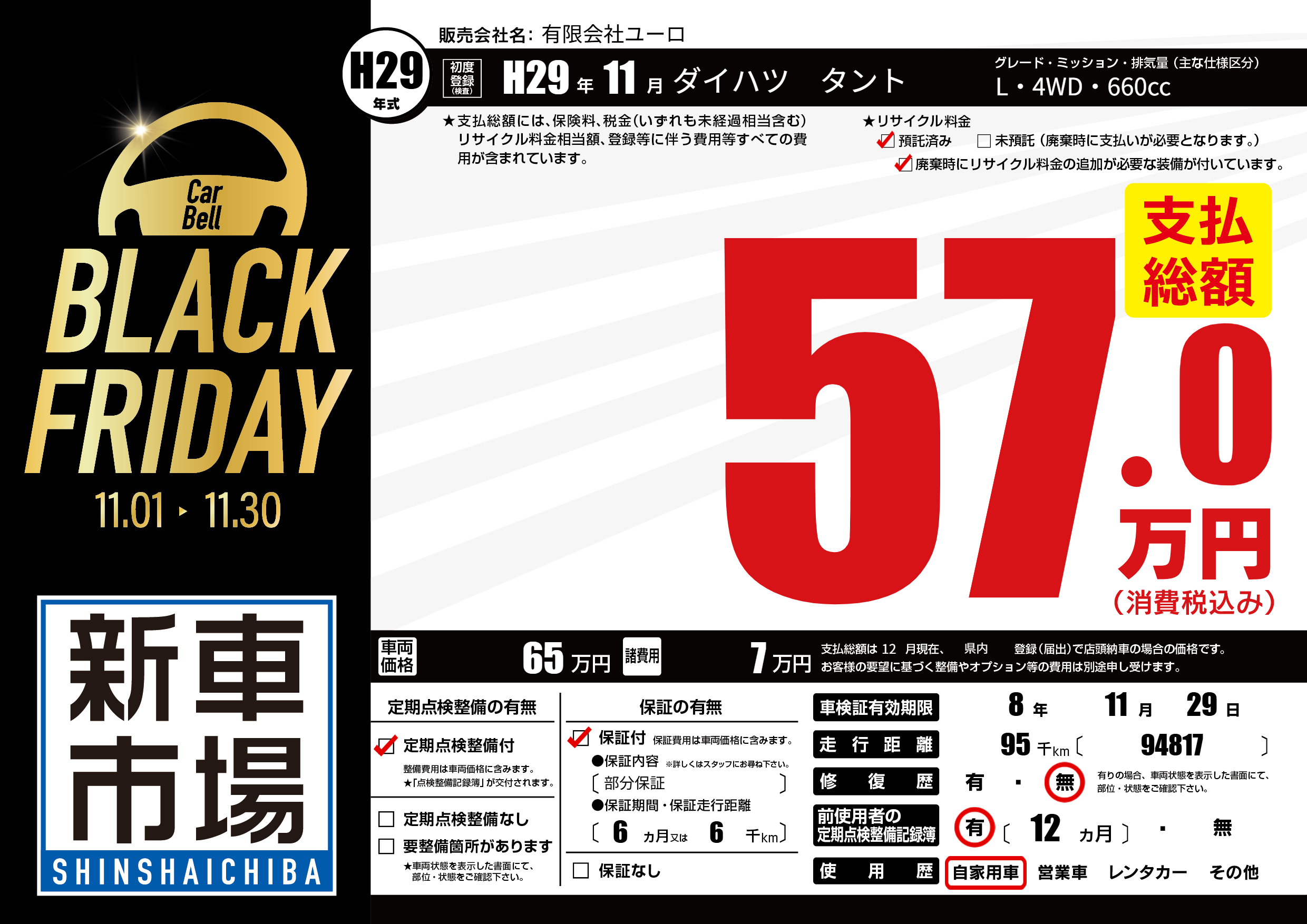 | 走行キロ | 9.5万km | 初年度登録 | H29年11月 |