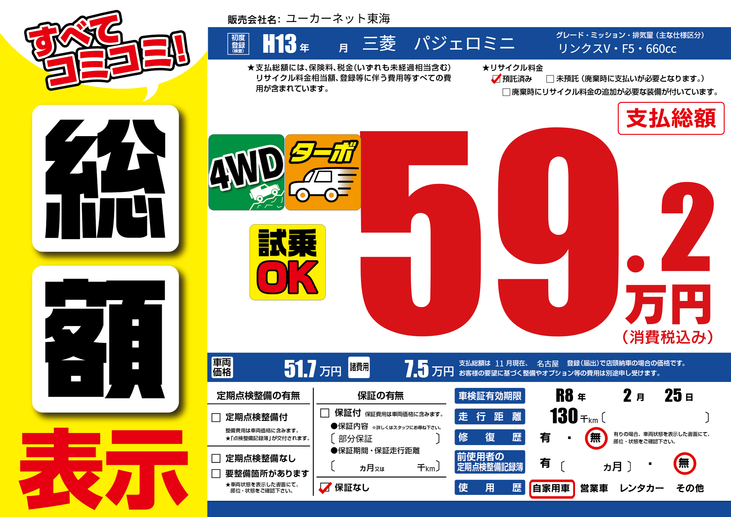 | 車検制限 | R8年 2月 25日 | ||