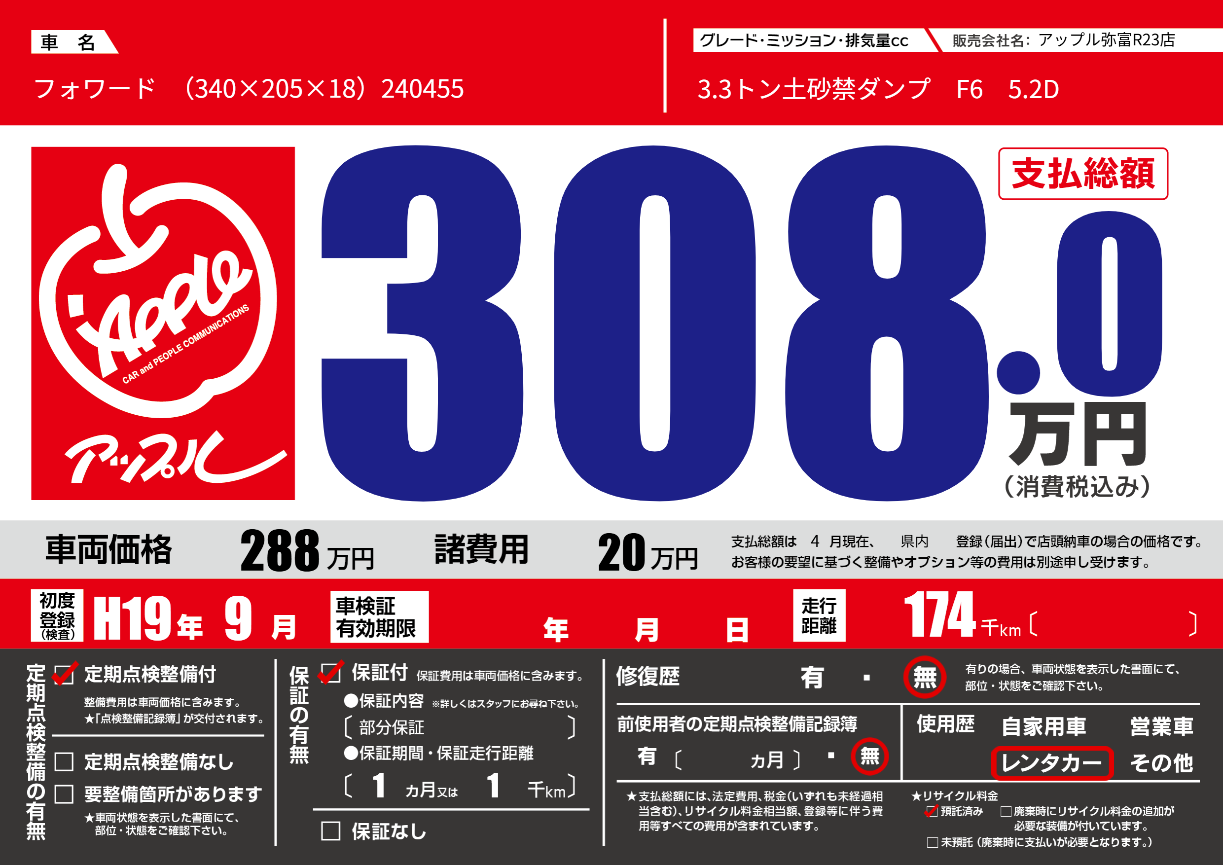 | 車名 | フォワード (340×205×18)240455 | グレード ミッション 排気量 |
