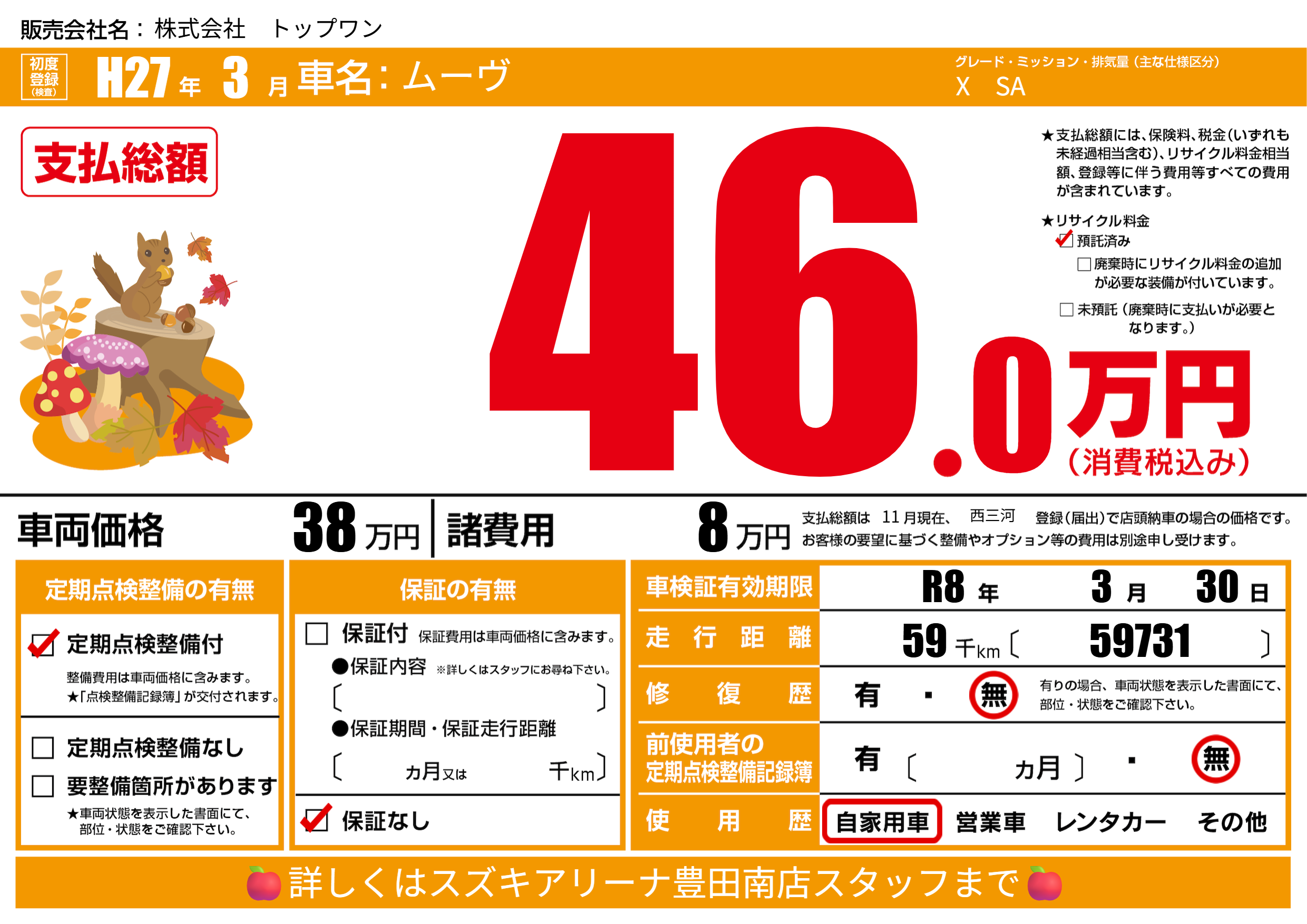 なし | 車検制限 | R8年3月30月 |