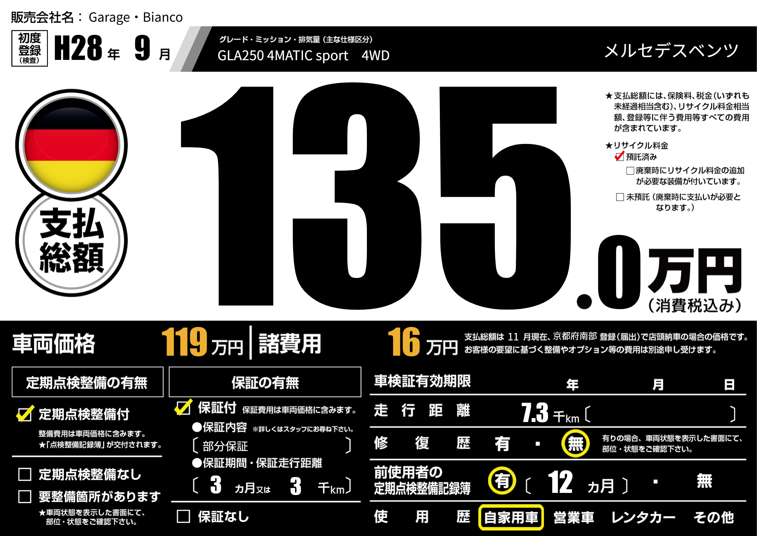 | 車名 | メルセデスベンツ | グレード ミッション 排気量 |