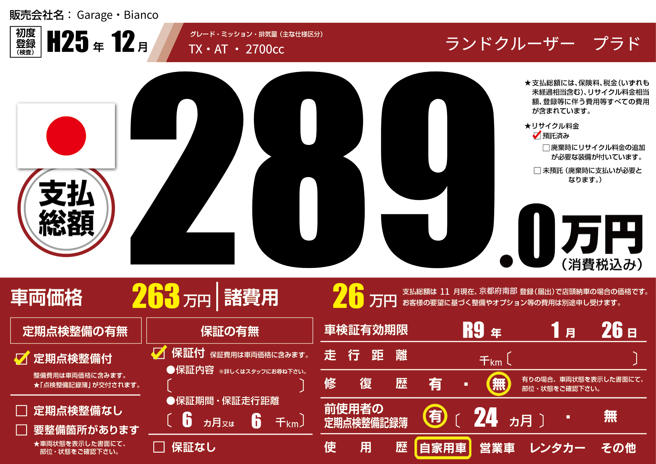 なし | 車検制限 | R9年1月26月 |