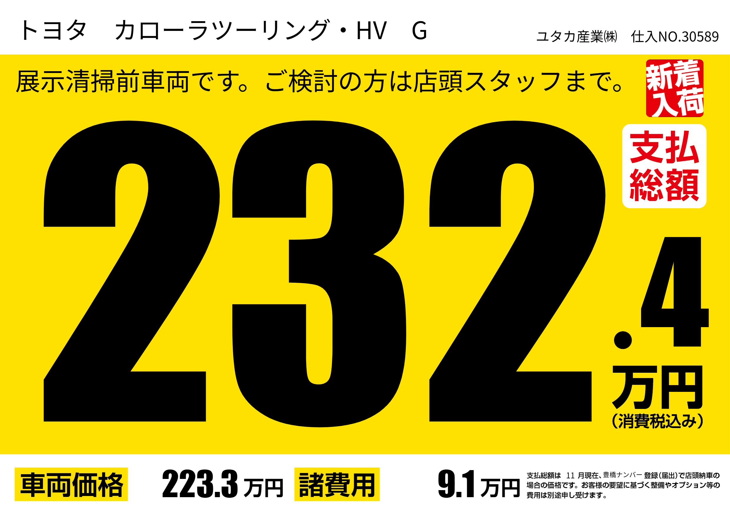 | 車名 | トヨタ カローラツーリング・HV G | グレード ミッション 排気量 |