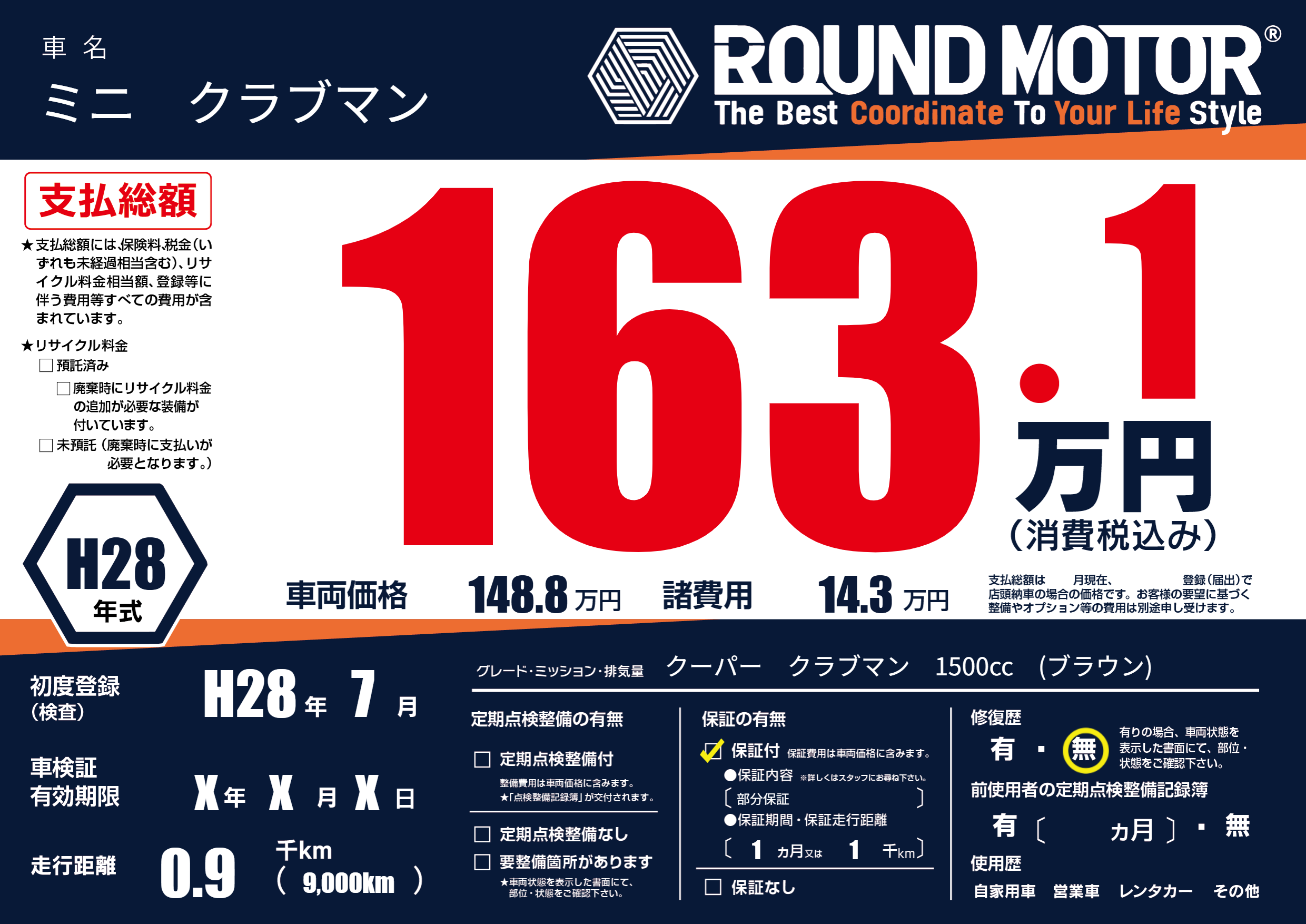 保証付き 保証内容(部分保証) 1ヶ月または(1)千kmまで |