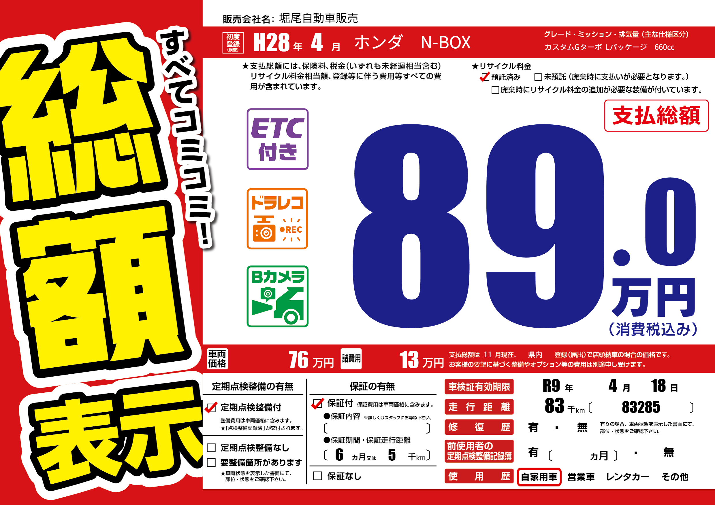 なし | 車検制限 | R9年4月18月 |