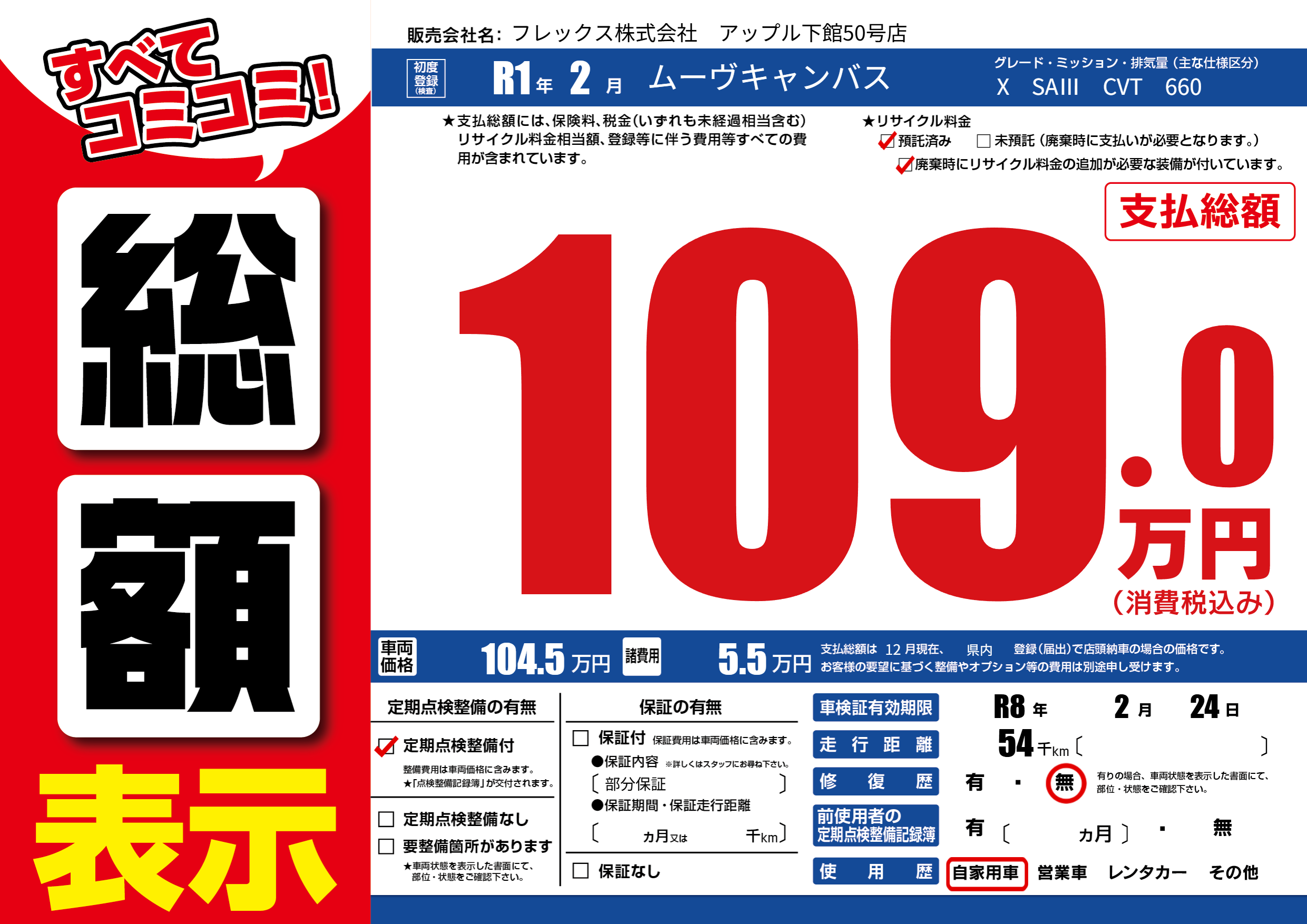| 車検制限 | R8年 2月 24日 | ||