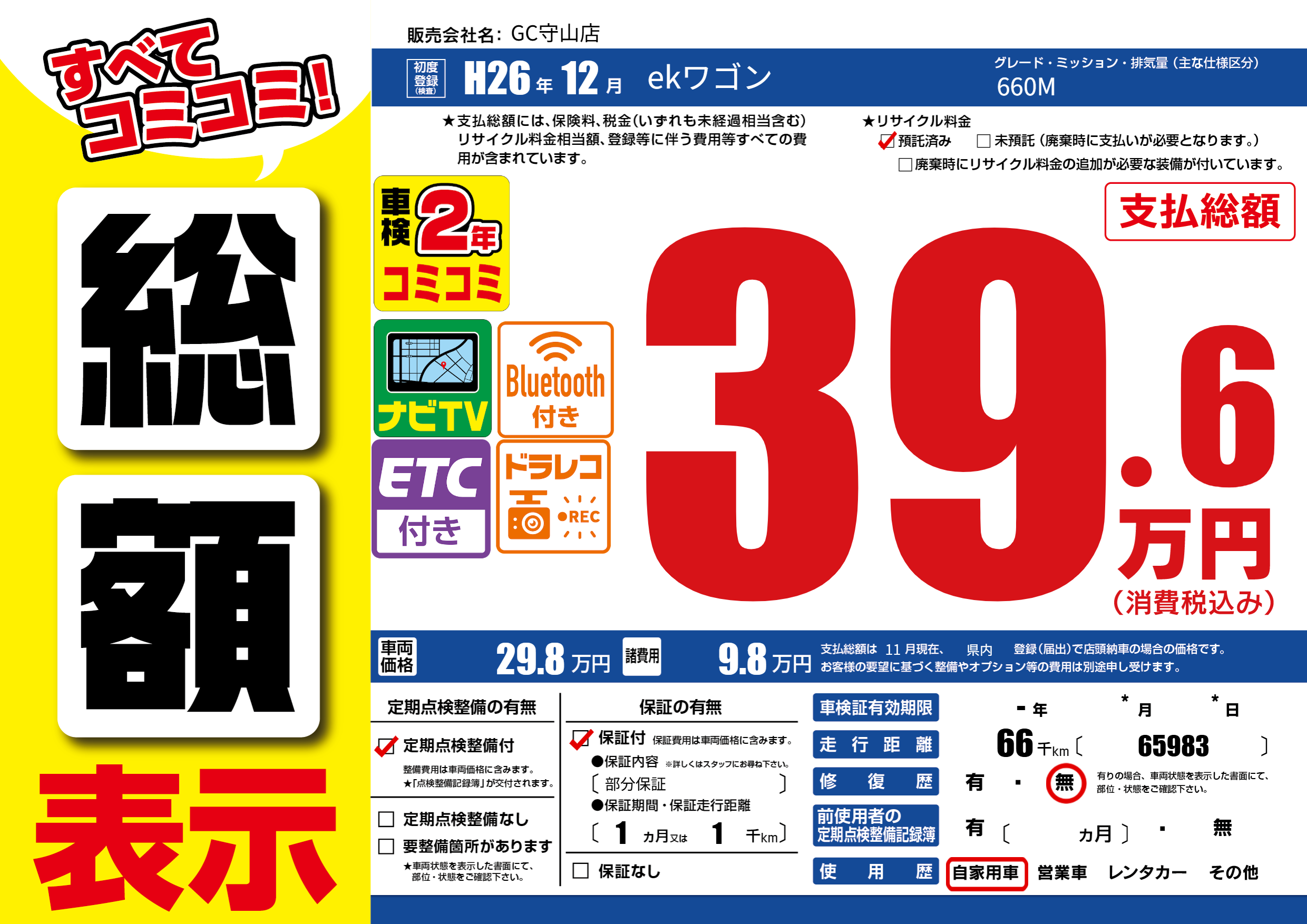 | 定期点検整備 | 定期点検整備あり | ||