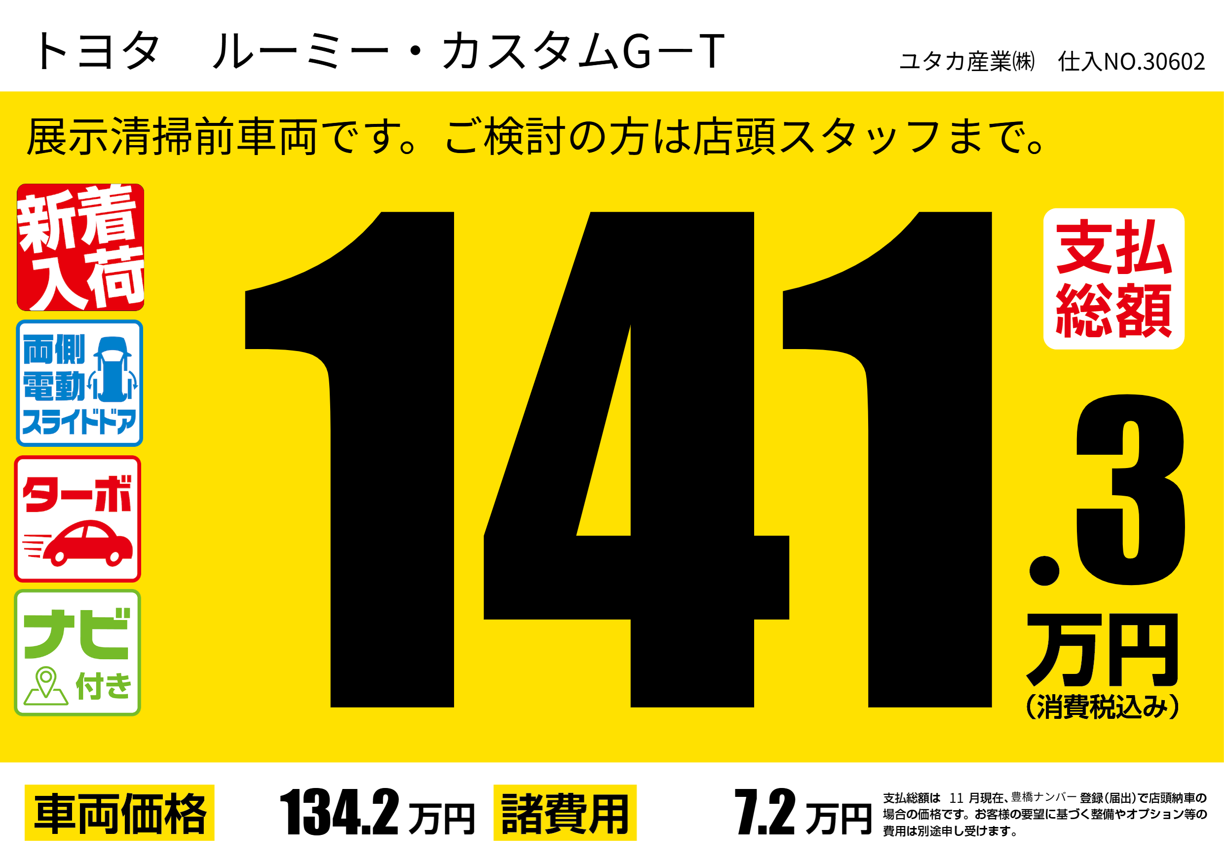 | 車名 | トヨタ ルーミー・カスタムG-T | グレード ミッション 排気量 |