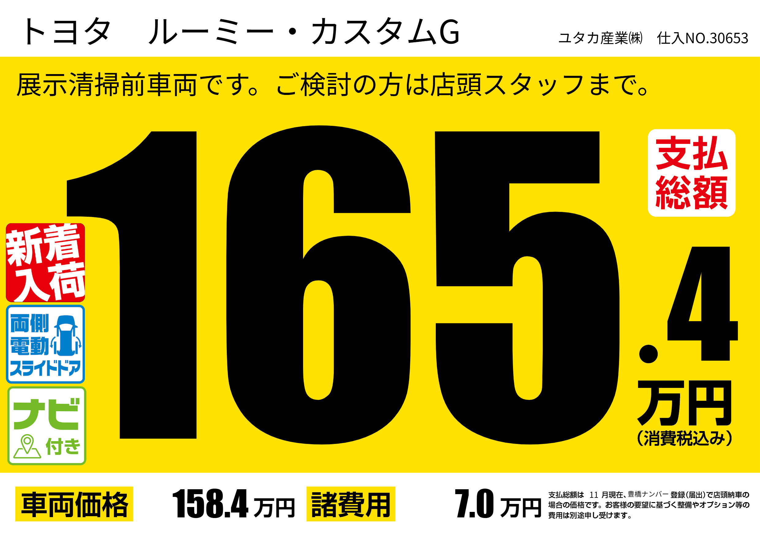 展示清掃前車両です。ご検討の方は店頭スタッフまで。 |