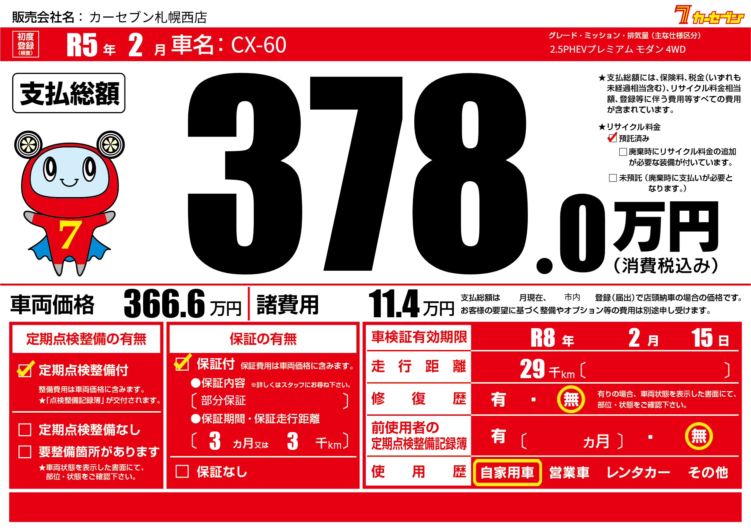 | 車名 | CX-60 | グレード ミッション 排気量 |