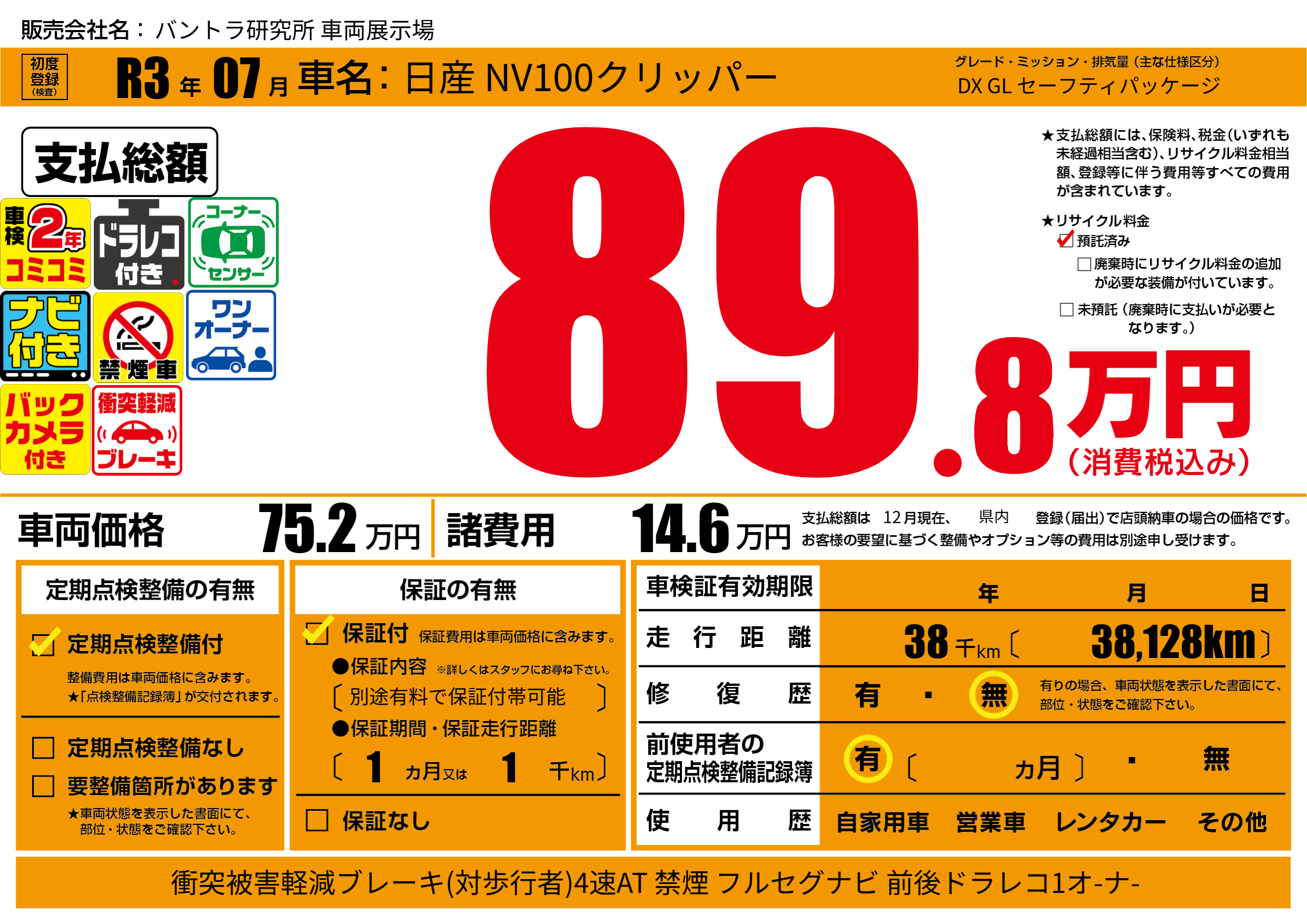 | 車名 | 日産 NV100クリッパー | グレード ミッション 排気量 |