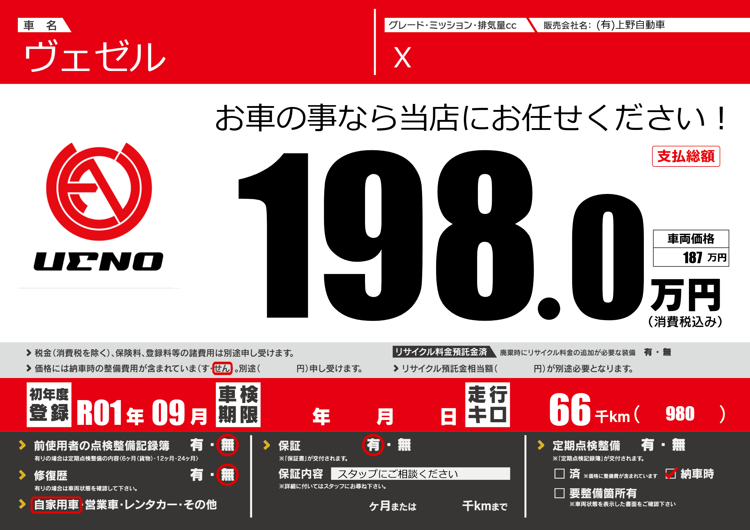 保証付き 保証内容(スタップにご相談ください) ---ヶ月または()千kmまで |