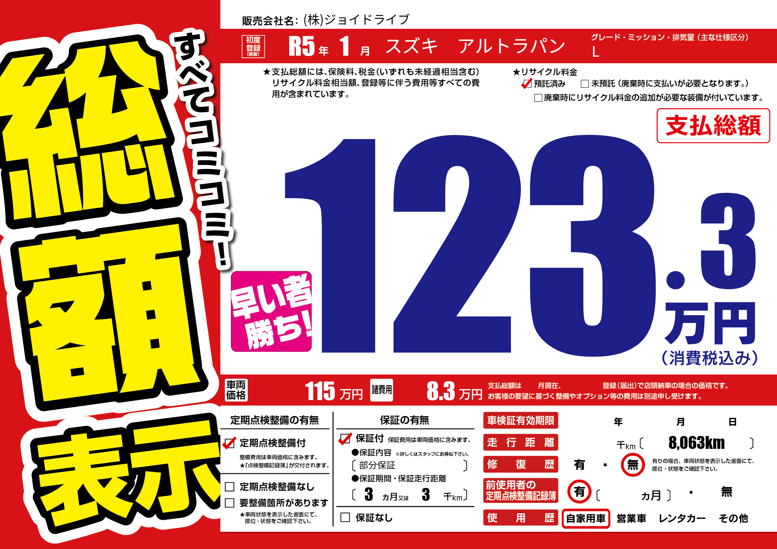 | 走行キロ | - | 初年度登録 | R5年1月 |