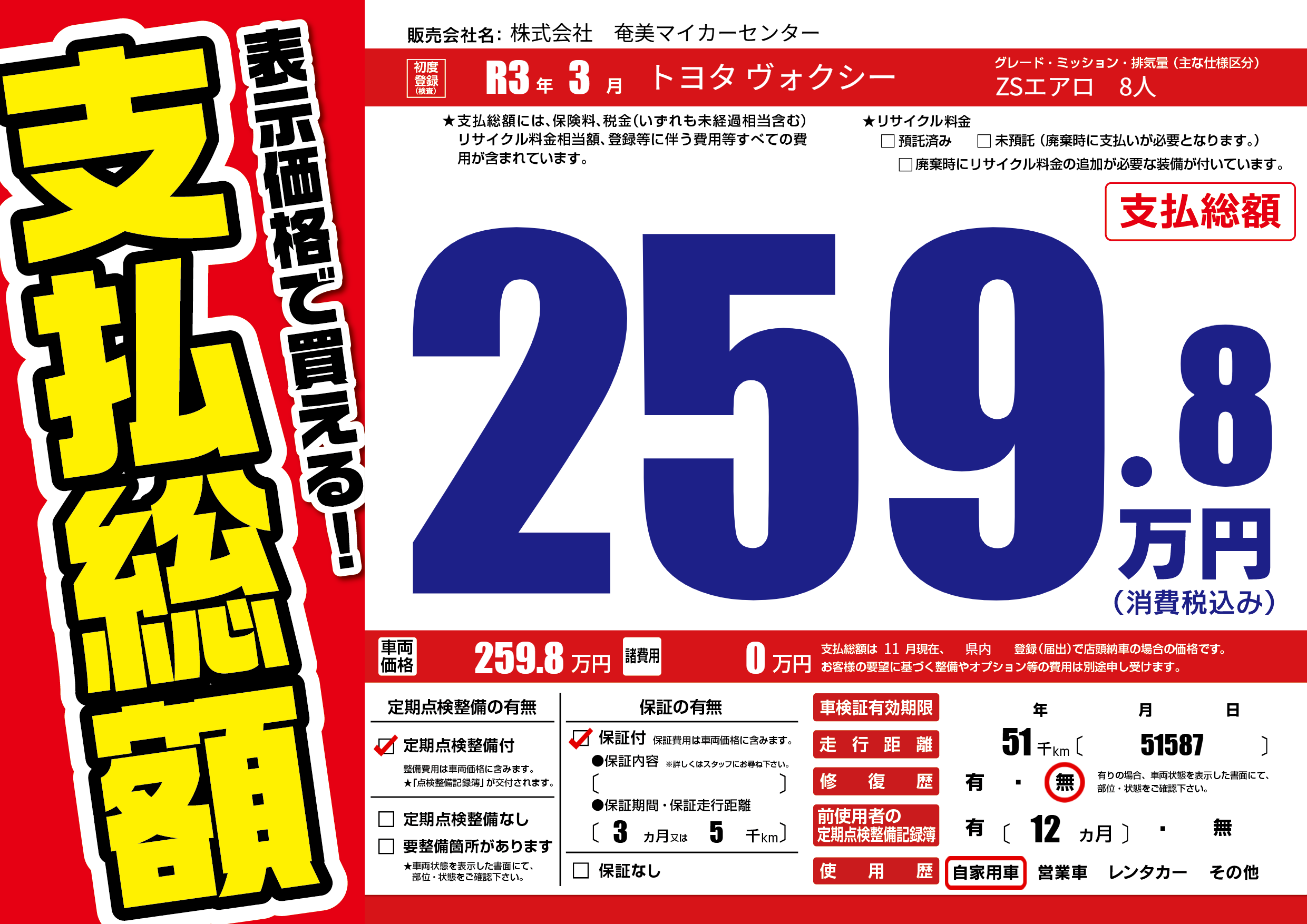 | 走行キロ | 5.1万km | 初年度登録 | R3年3月 |