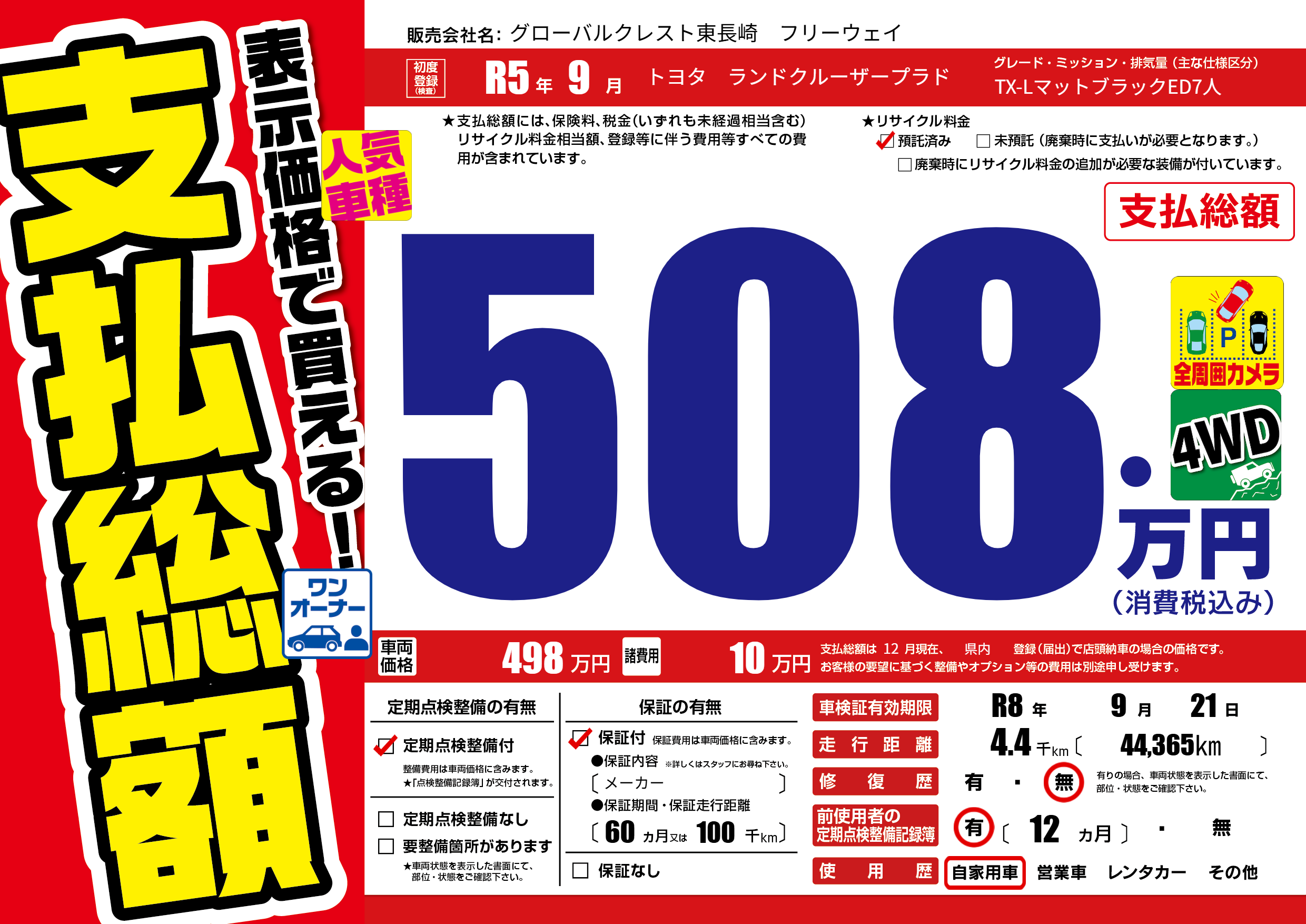 | 走行キロ | 0.4万km | 初年度登録 | R5年9月 |