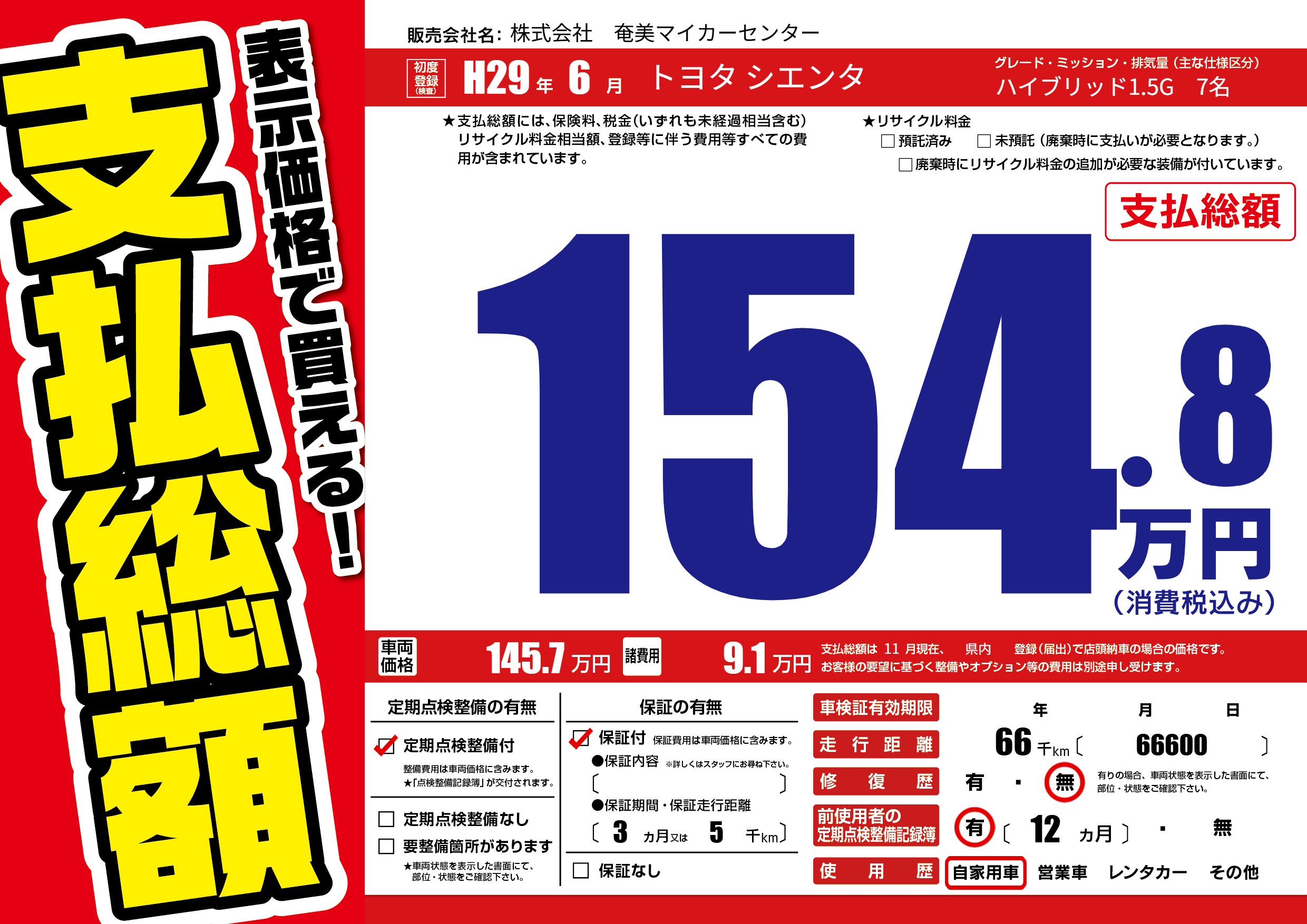 | 車検制限 | - 年 - 月 - 日 | ||