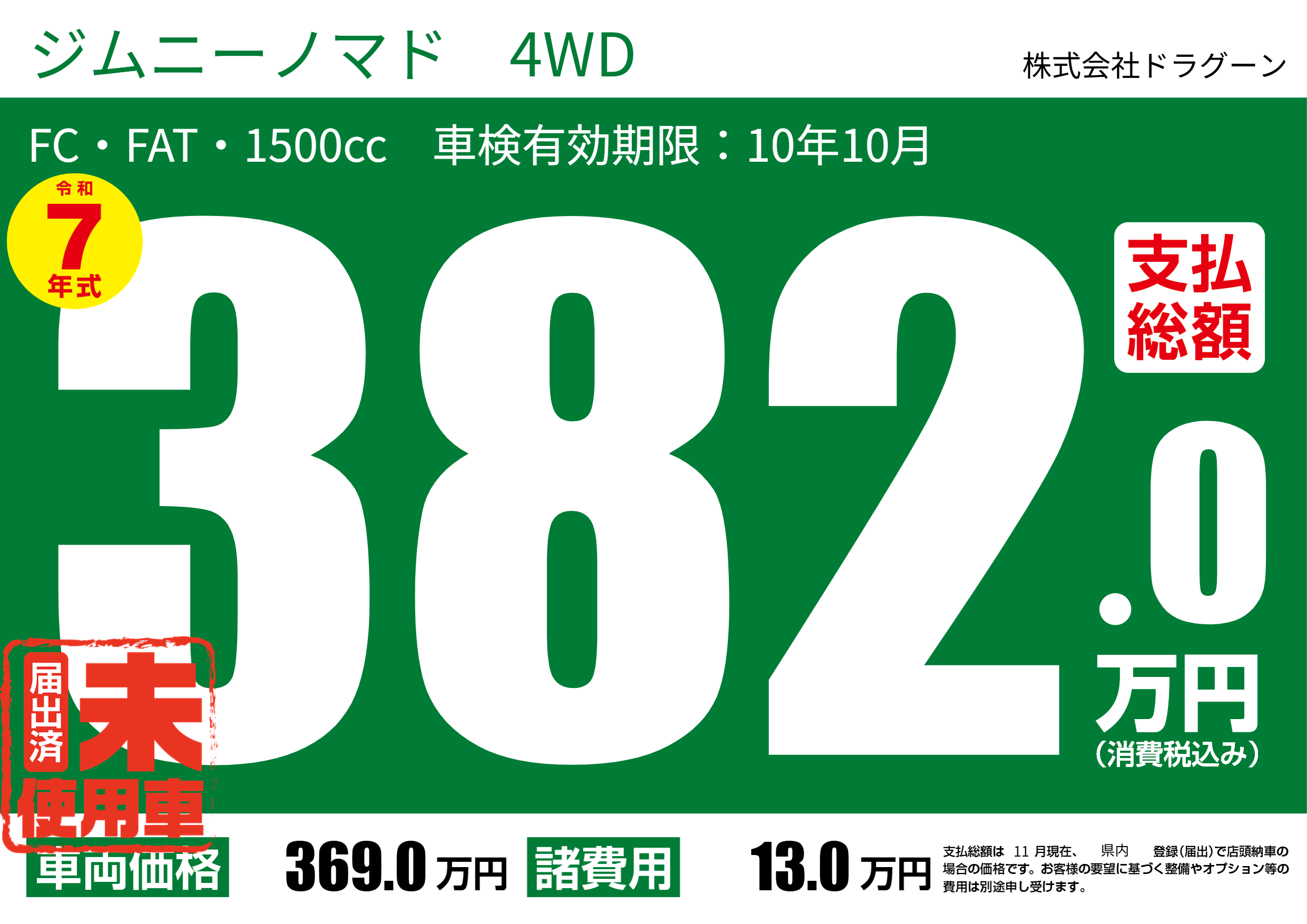 | 車名 | ジムニーノマド 4WD | グレード ミッション 排気量 |